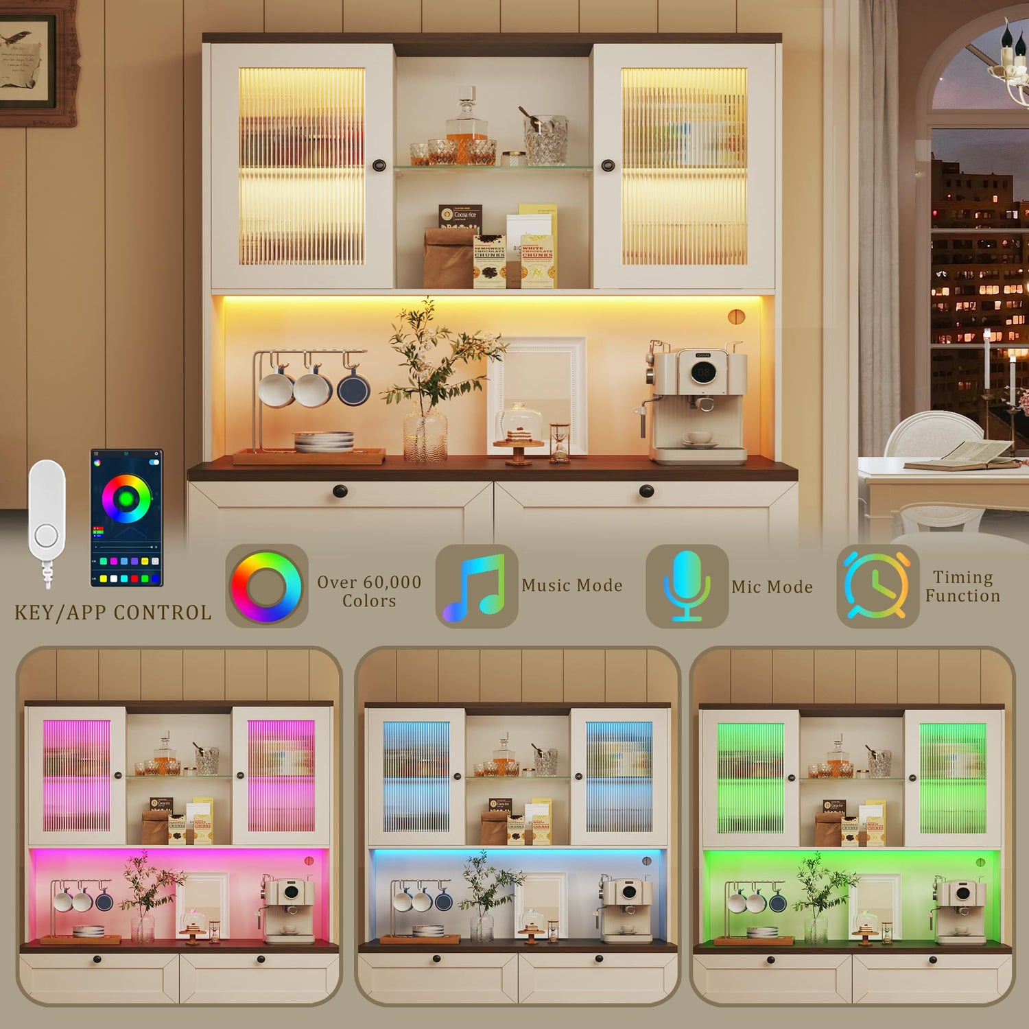 - DYNAMIC RGB MOOD LIGHTING: The kitchen pantry cabinet features app/switch-controlled RGB LED strips with 60,000+ colors, dimming modes, and music-sync functionality. Transform your kitchen into a vibrant visual centerpiece—even in low light