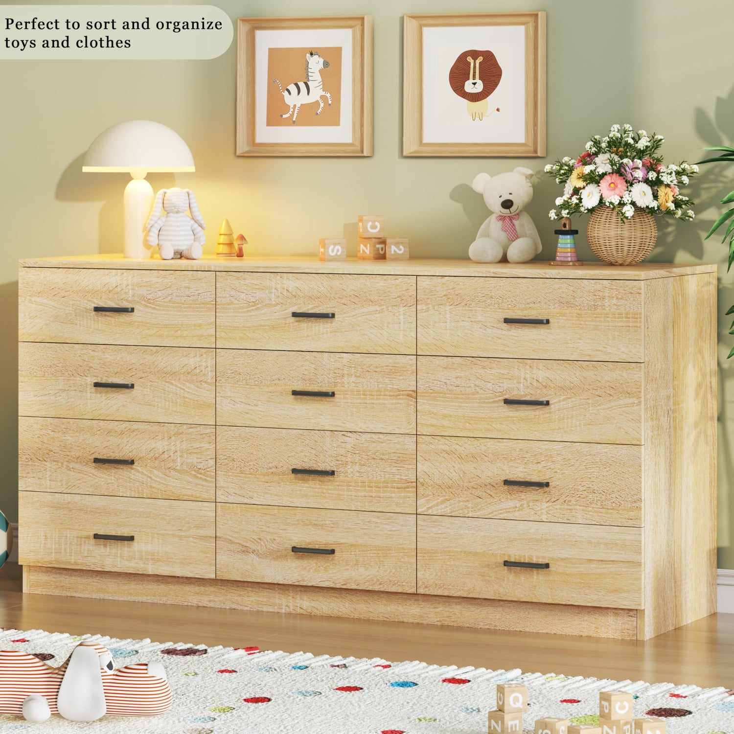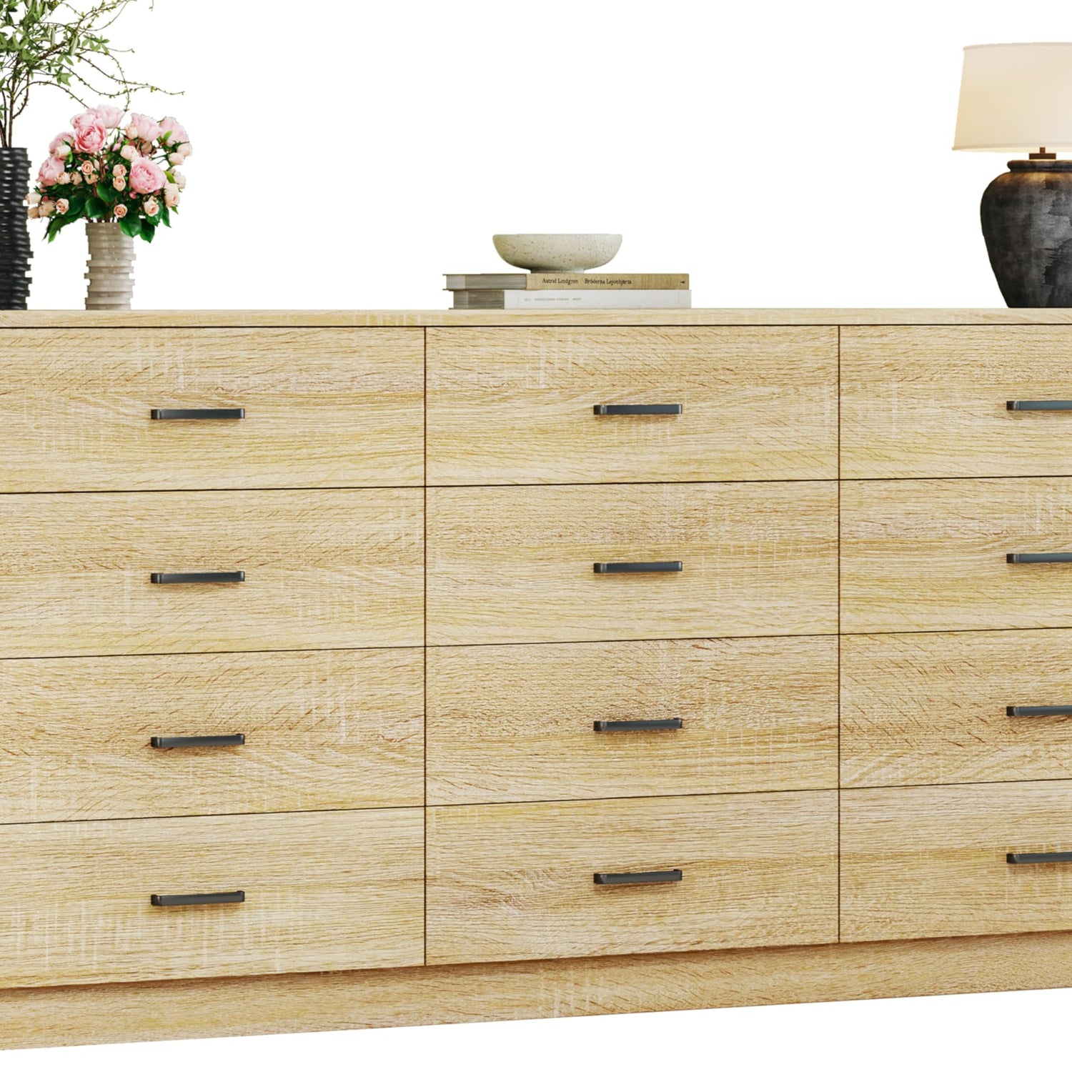 HUAHUU Dresser for Bedroom with 12 Drawers, 60'' Wide Mid Century Modern Dressers, Natural Wood Grain, Chests of Drawers TV Stand, Large Storage Organizer, Closet, Entryway, Natural