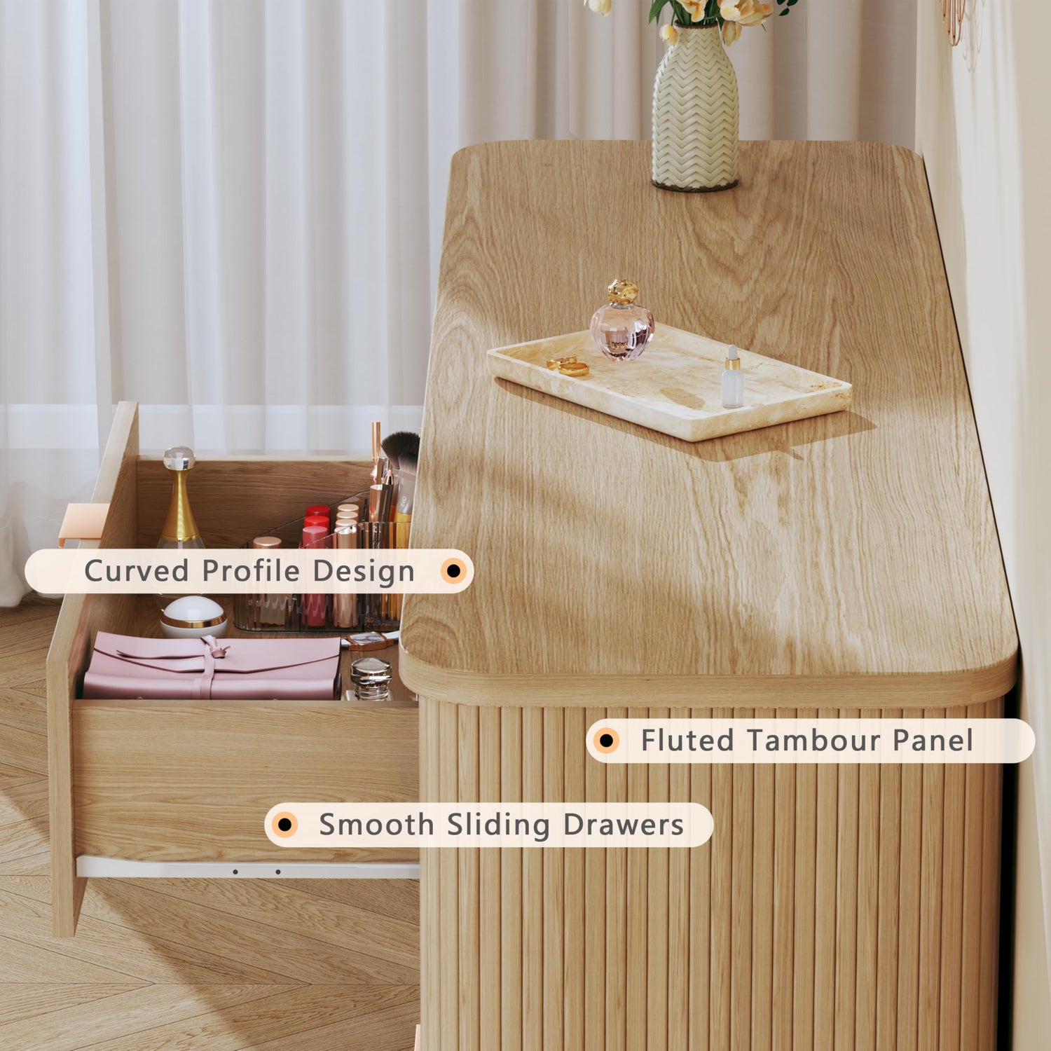 - Fluted Dresser Design: The fluted tambour panel with sleek curved profile design on both sides of the 6 drawer dresser is unique and elegant, enhancing the texture and spatial presence of this exceptional piece.