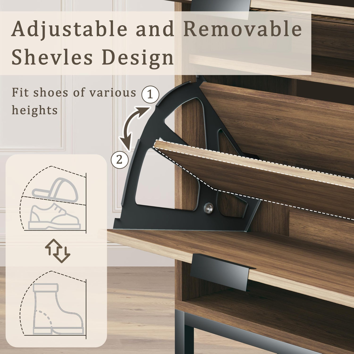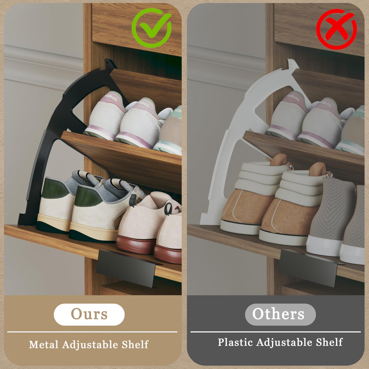 - Safe & Reliable Quality: Made of high-quality MDF wood and metal legs, the stable structure of narrow shoe cabinet ensures super load-bearing capacity, shoe cabinet for entryway also features an anti-tip device to attach it to the wall, preventing tipping and providing child safety
