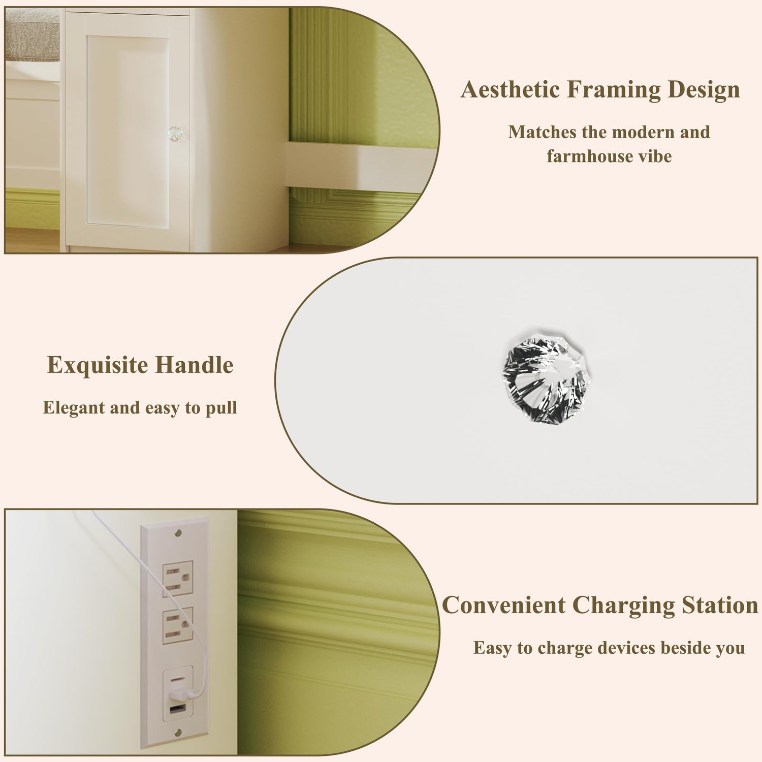 - Vanity Set with Charging Station: Our vanity set with a charging station on the right side cabinet. There are 2 plugs and 2 USB ports to fit your different devices. It's so convenient to charge any devices beside you. When you enjoy the makeup, you and use the hair curler and charge your phone at the same time.