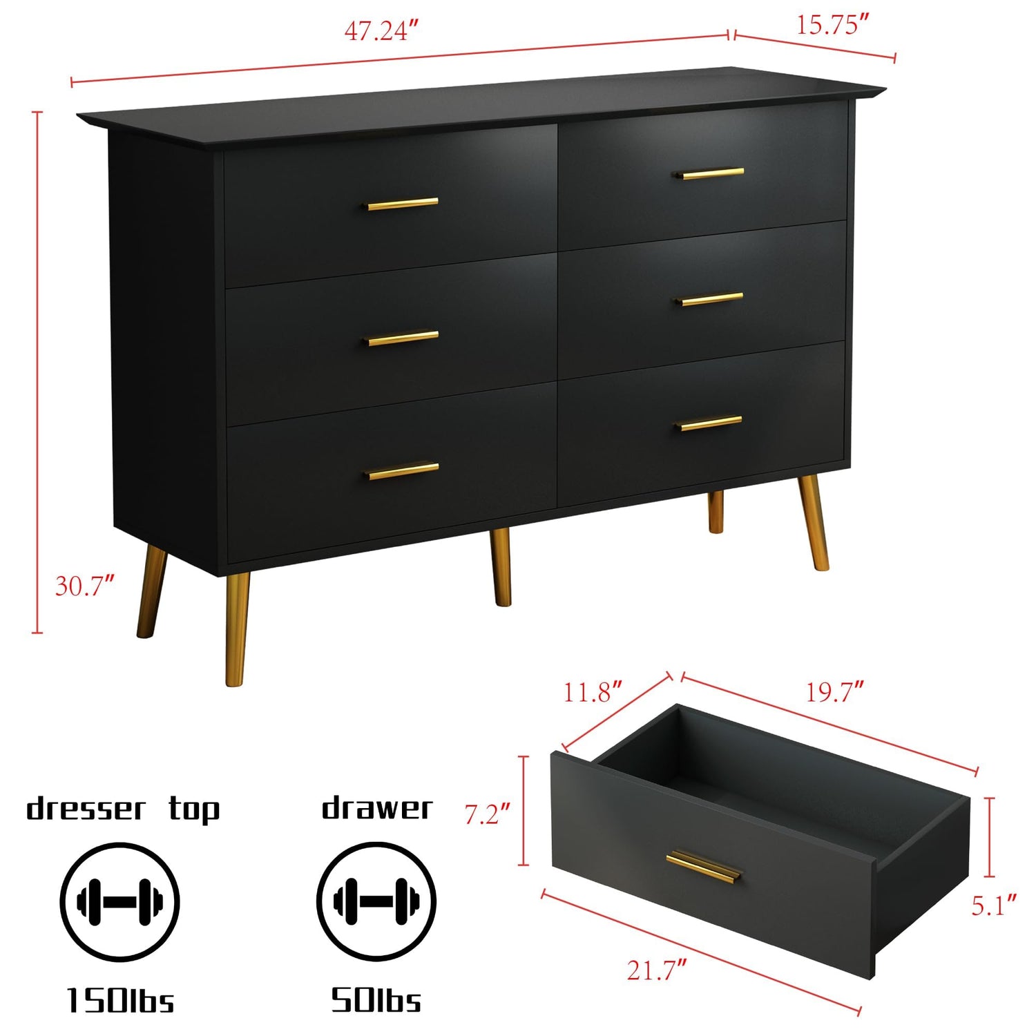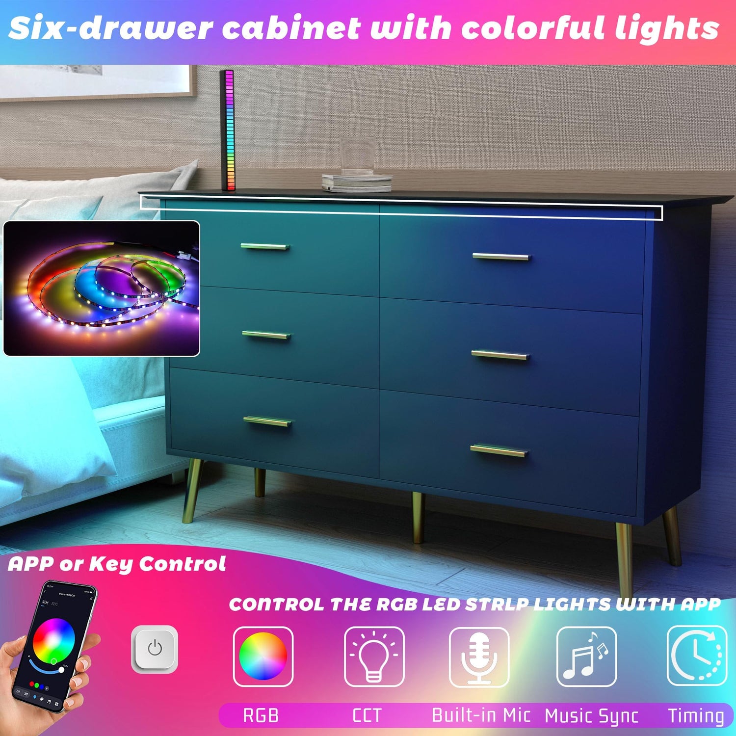 - 【AMPLE STORAGE SPACE】Dimension of the dressers bedroom furniture is 47.25"L x 15.75"W x 30.7"H. Each wood chest of drawer measures:" 21.7L x" 11.8W x7.2" H. 6 drawers of led dresser are equipped with sliding rail, the drawers slide in & out very smoothly. The dresser surface is easy to clean and wipe, suitable for bedroom, living room, closet, hallway, etc.