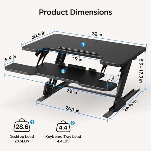 - Easy Transitions: With smooth dual gas spring lifting, you can go from sitting to standing in seconds. The stand up desk riser delivers smooth, quiet, and stable lifting. Built to last, the gas springs are tested for over 20,000 lift cycles to ensure long-term durability and dependable daily performance.