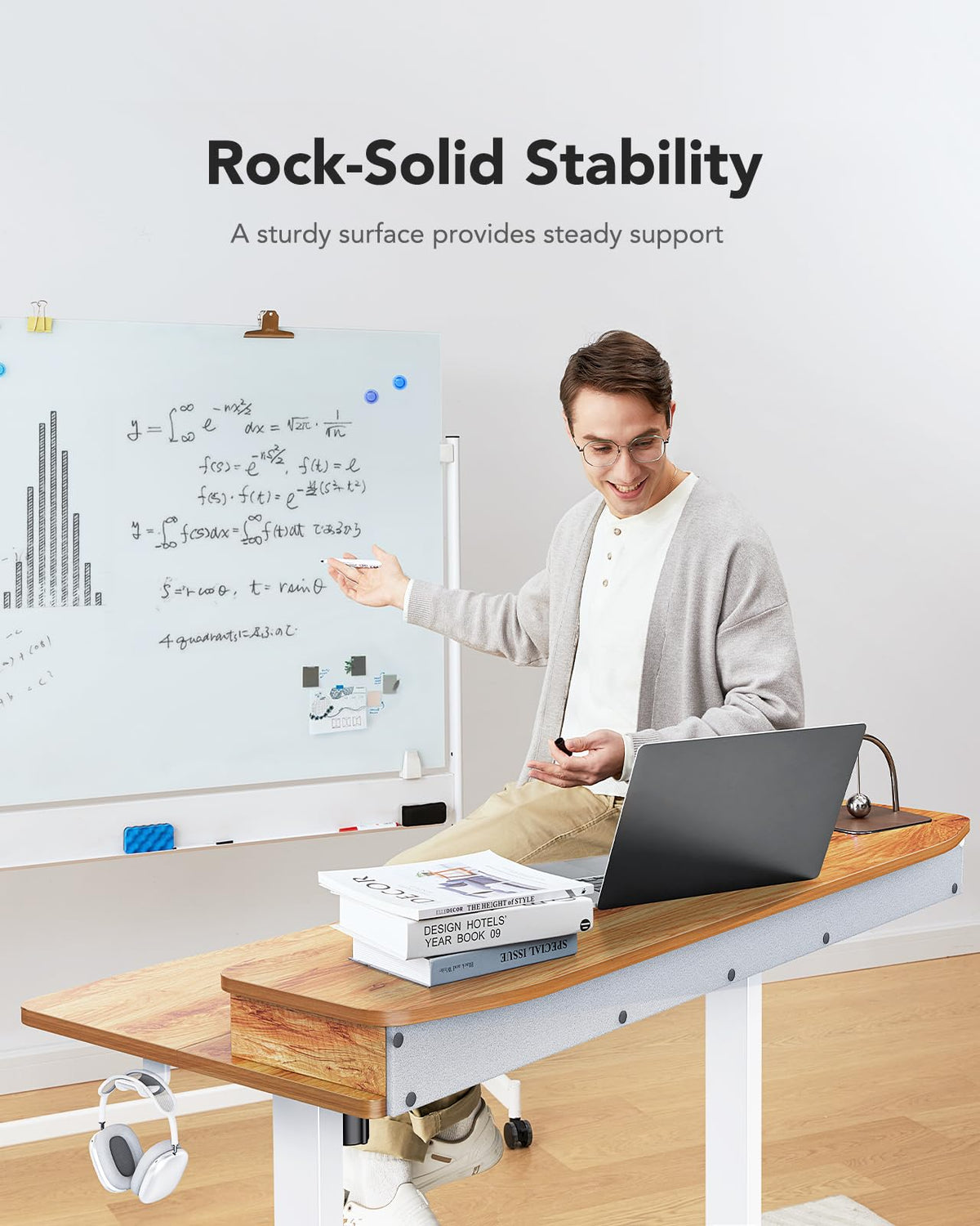 - Smart, Functional Features: The curved ergonomic edges of the rising desk make working around the tabletop more comfortable without accidental bumps and damage, while 4 height preset buttons provide one-touch adjustment between your go-to sitting or standing positions.
