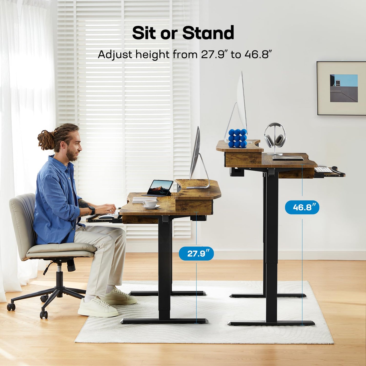 HUANUO 48" x 26" Electric Standing Desk with 2 Drawers & 26.7" Large Keyboard Tray, C-Clamp Mount Compatible, Adjustable Computer Desk for Home Office, Stand Up Desk with 4 Height Presets, Vintage