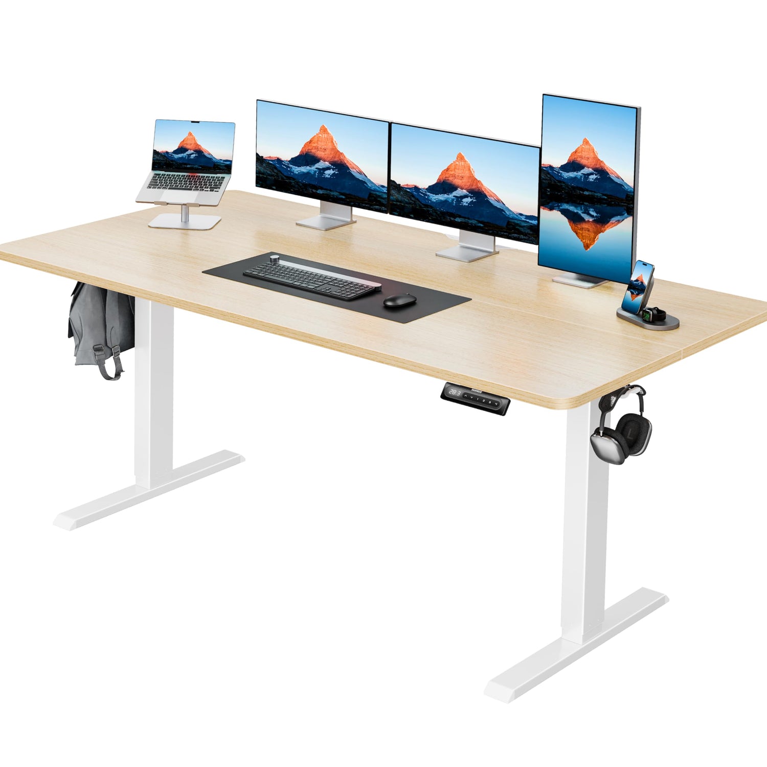 HUANUO 63" x 28" Electric Standing Desk Adjustable Height, 4 Memory Height Settings, Headphone Hook, Cable Manager, Sit Stand Up Desk for Home Office & Computer Workstation, Nature