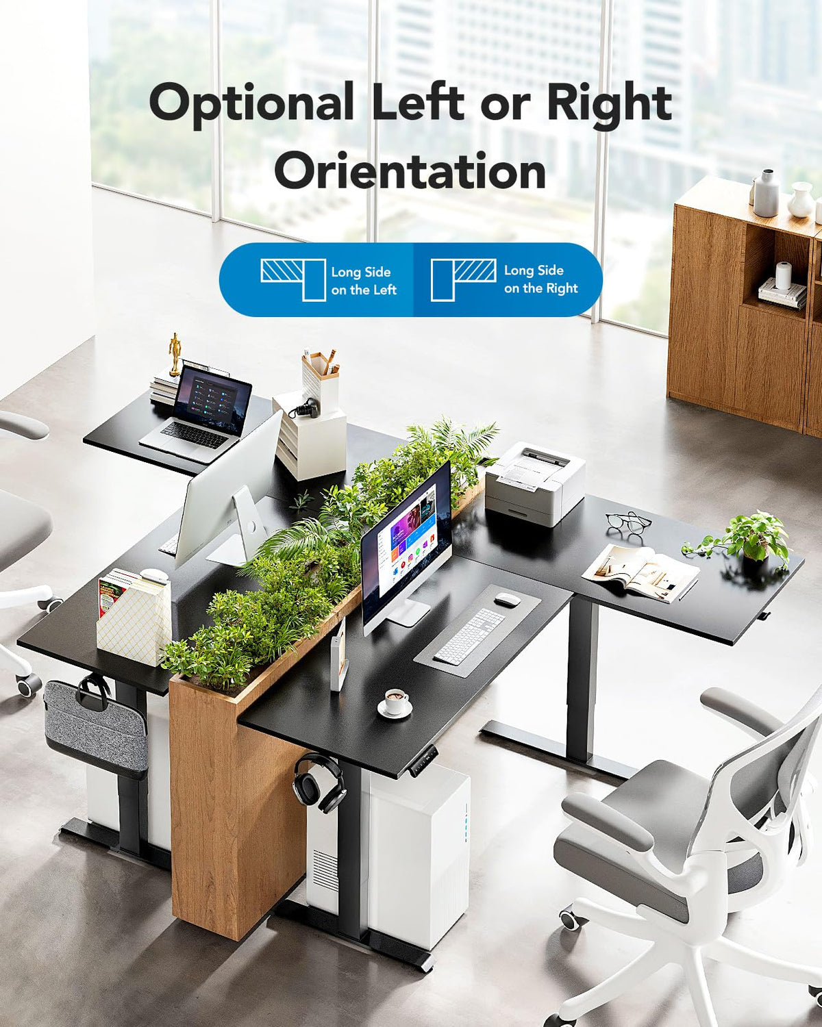 - Left or Right Orientation: The height adjustable table offers two setup options, allowing you to configure the wider desktop on the left or right side. This flexibility makes it possible to customize the desk shape to fit your specific room shape or workspace layout.