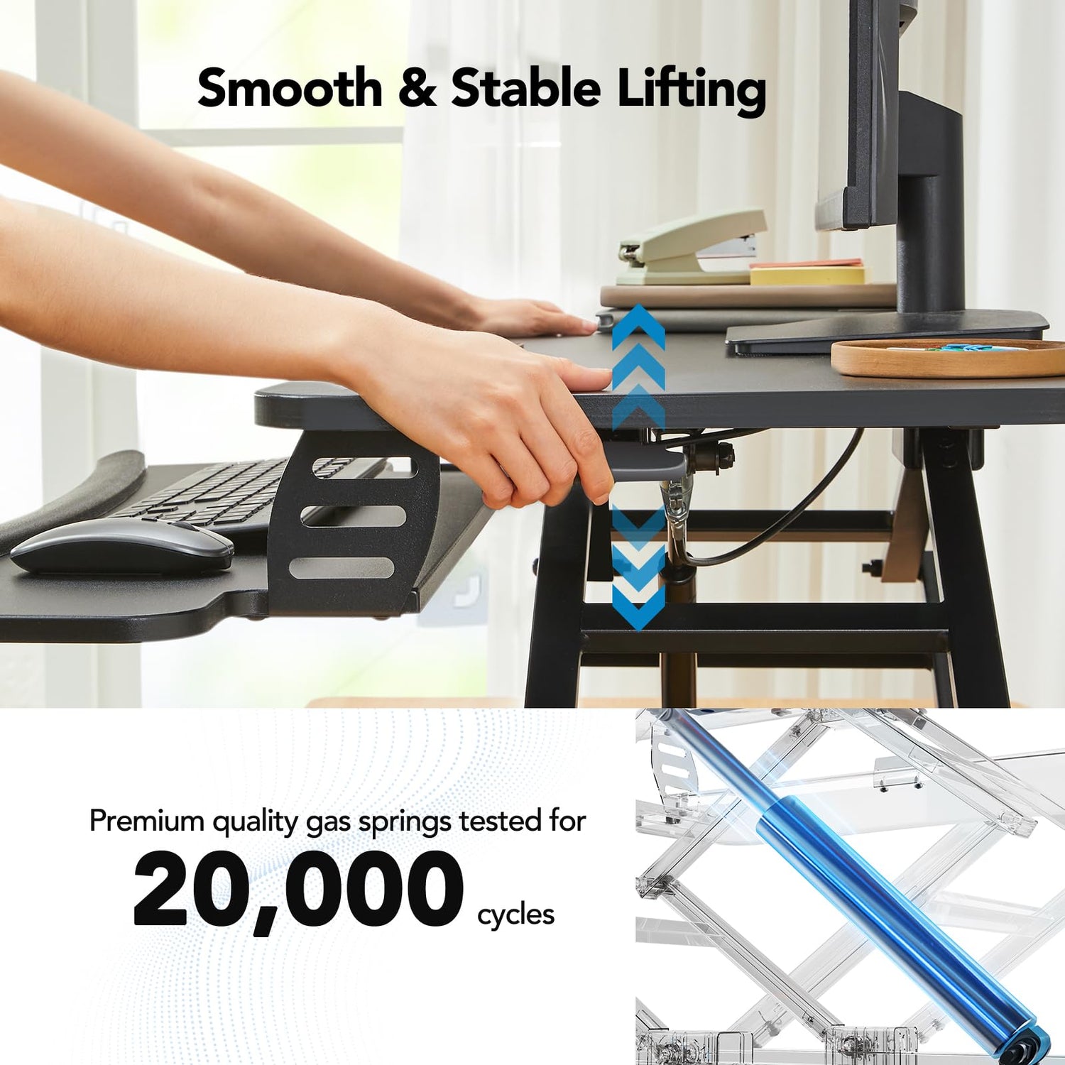 HUANUO Standing Desk Converter, 32” Sit to Stand Desk with Keyboard Tray, Height Adjustable Stand Up Desk Riser for Home Office, Dual Monitor and Laptop Workstation, Black