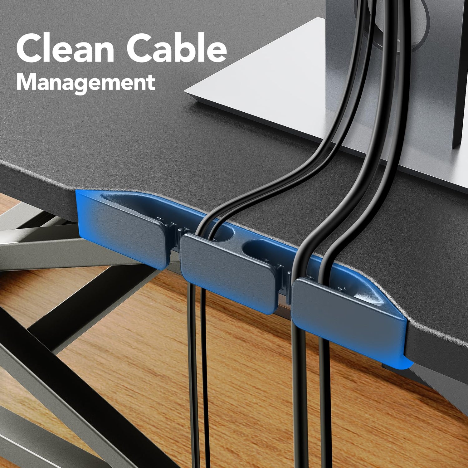 - Ergonomic Design: The desk converter has curved edges and an optional cushioned wrist pad to provide comfortable typing. Built-in cable management clips on the back of the desktop allow you to neatly route wires for a tidy look which increases productivity and improves focus!