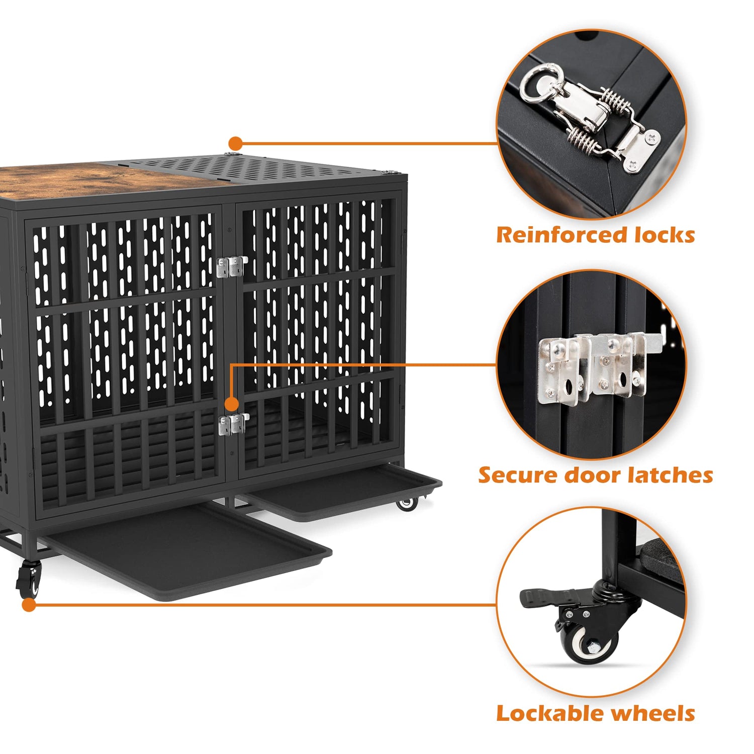 - Easy to use and maintain: Two trays can be removed to easily dispose of any waste, and the 4 lockable 360-degree wheels allow you to move this heavy duty dog crate from one room to another and stay in the place where you want.