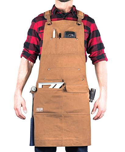 - Broad Use - Commercial grade man apron, woodshop apron for carpenters, woodworking tools and accessories, woodshop, workshop, garage, machinist apron, lathe work, leatherwork, metalwork, light welding, metalsmith, blacksmith, gunsmith, wood craft, xl men's apron, etc. Unique gift for men & fathers.