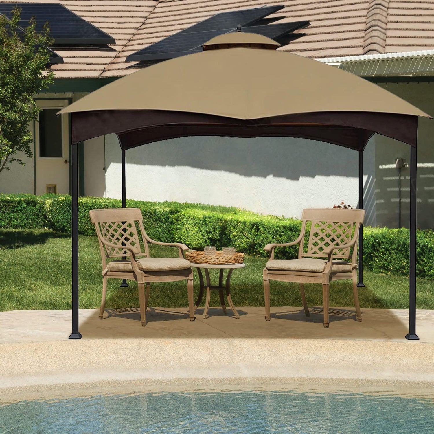 Hugline Outdoor Replacement Canopy Top Double Tier Gazebo Roof Cover for Lowe's Allen Roth 10x12 Gazebo #GF-12S004B-1 (Khaki)