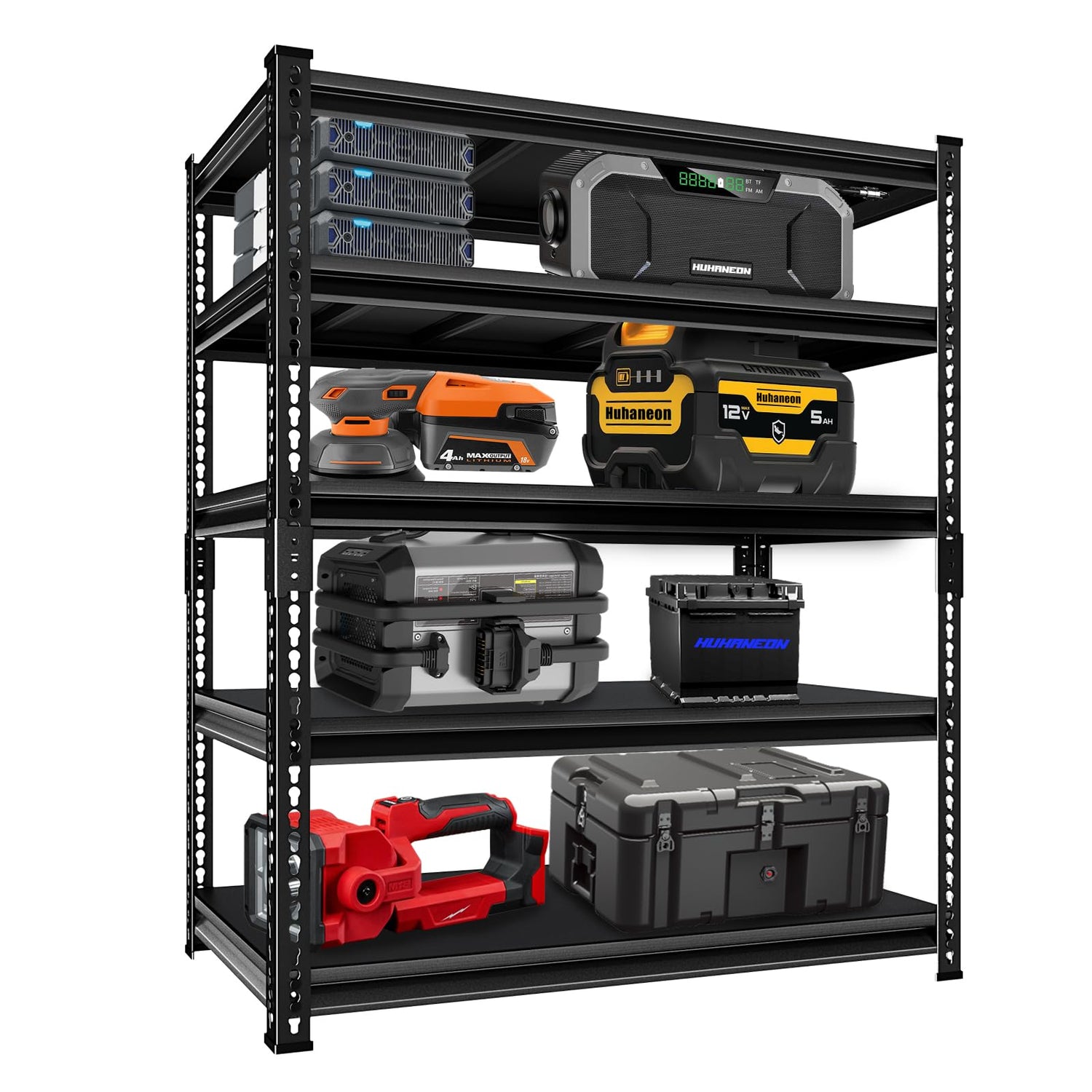 Huhaneon Heavy Duty Garage Shelves - 48''W 2,500Lbs Metal Adjustable Storage Shelving Rack Units for Warehouse Basement 5 Tier Black 47.2" W x 17.7" D x 78" H