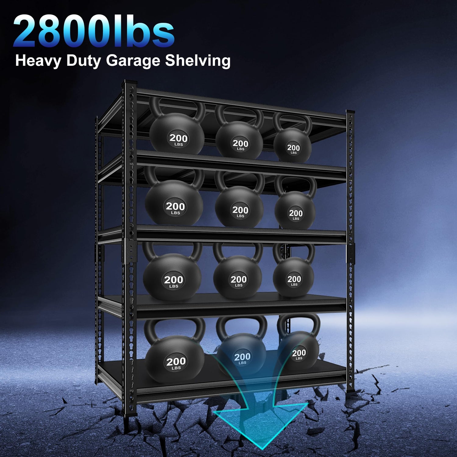 - Heavy Duty Storage Shelves - Each shelf holds up to 500 lbs, with a 2,500 lbs total weight capacity. Perfect for storing tools, equipment, and anything else your garage, warehouse, or workspace demands