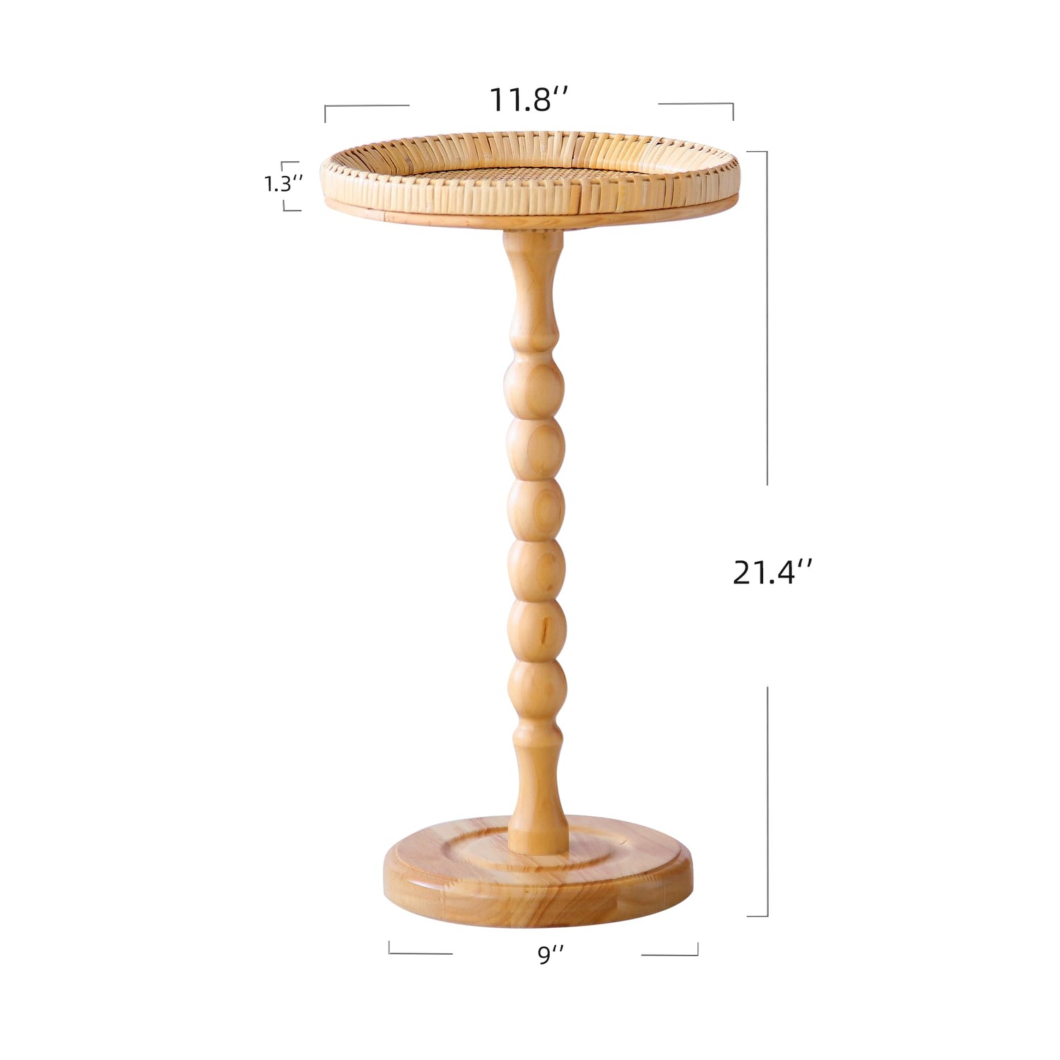 HuiDao Drink Table,Rattan Round Small Side Table for Small Spaces, Boho Circle End Table Coffee Table with Solid Wood Leg for Living Room, Pedestal Table for Bedroom, Corners