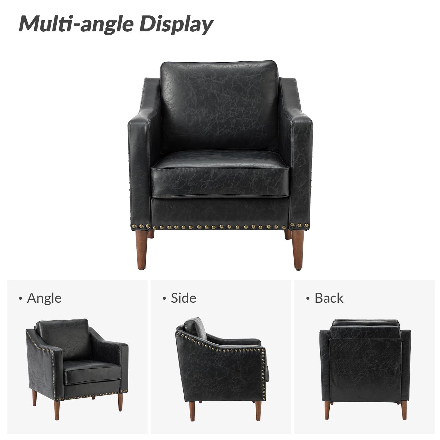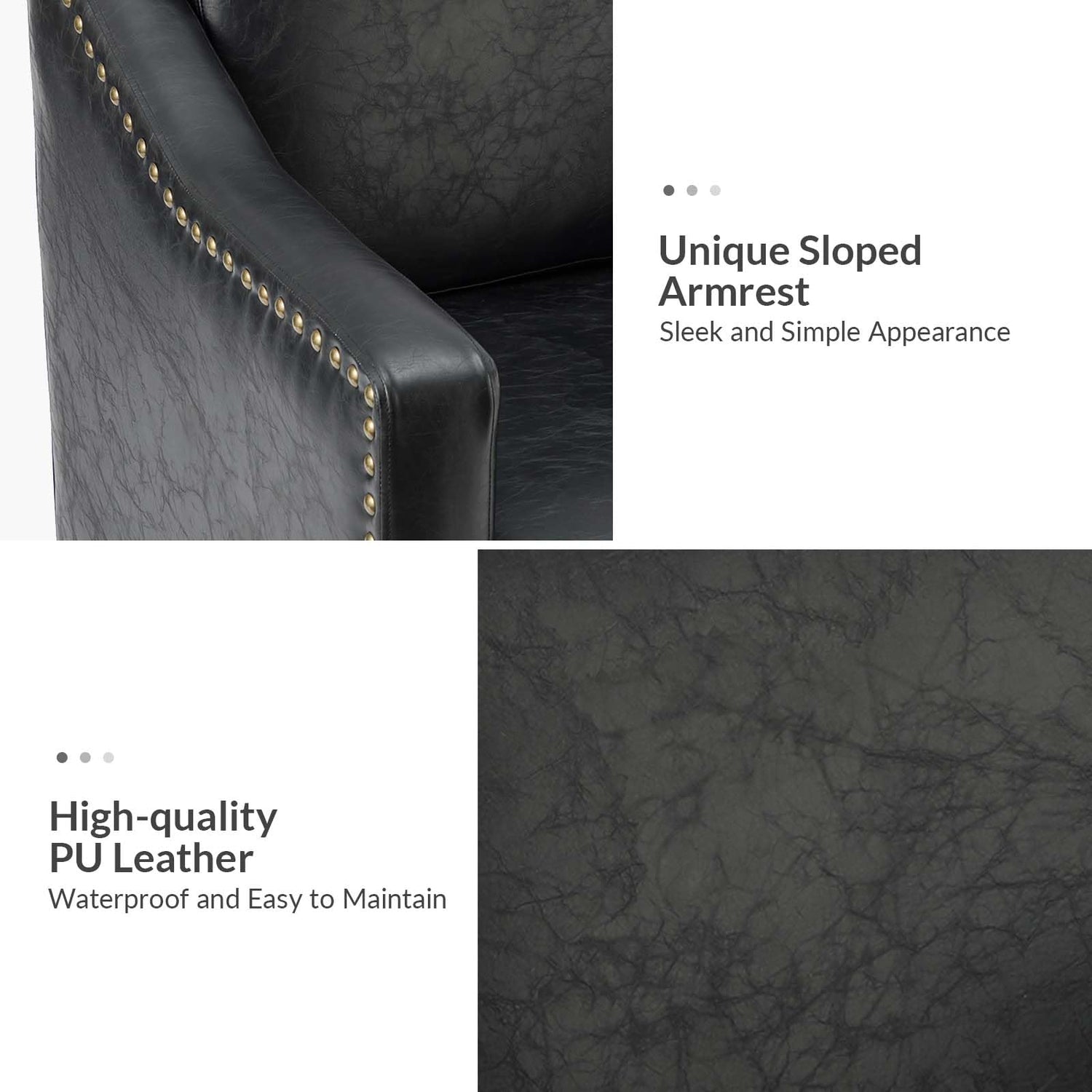 HULALA HOME Faux Leather Accent Armchair with Back & Seat Cushions, Traditional Club Chair with Nailhead Trim, Comfy Upholstered Sofa Chair for Bedroom & Living Room, Black