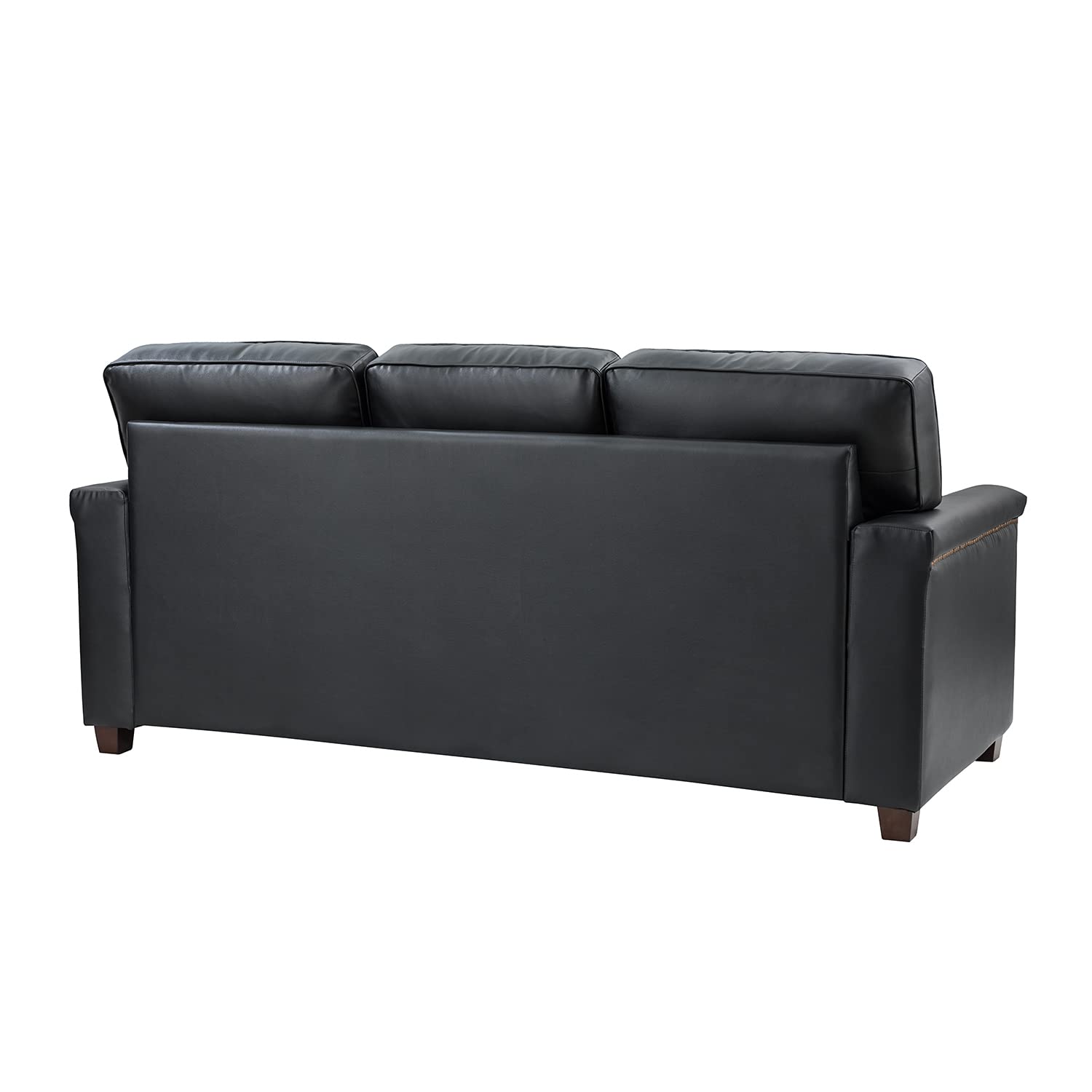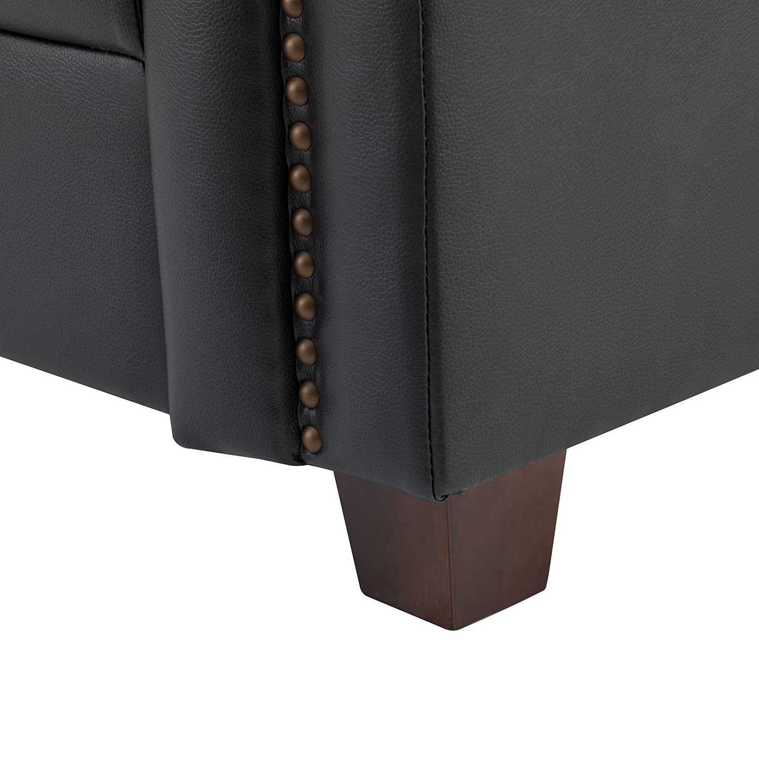 - 【Traditional Sofa Style】This upholstered leather sofa is sophisticatedly designed, and features elegant nail head accents at the front of the curved armrests for eye-catching and complements the classic wooden legs can be the finishing touch to your interior decor. The typical design features ergonomic wide arms and padded cushions for a more comfortable sitting position. Set it in your living room, office, bedroom, or leisure areas, and its elegant style will complement most furniture sets.