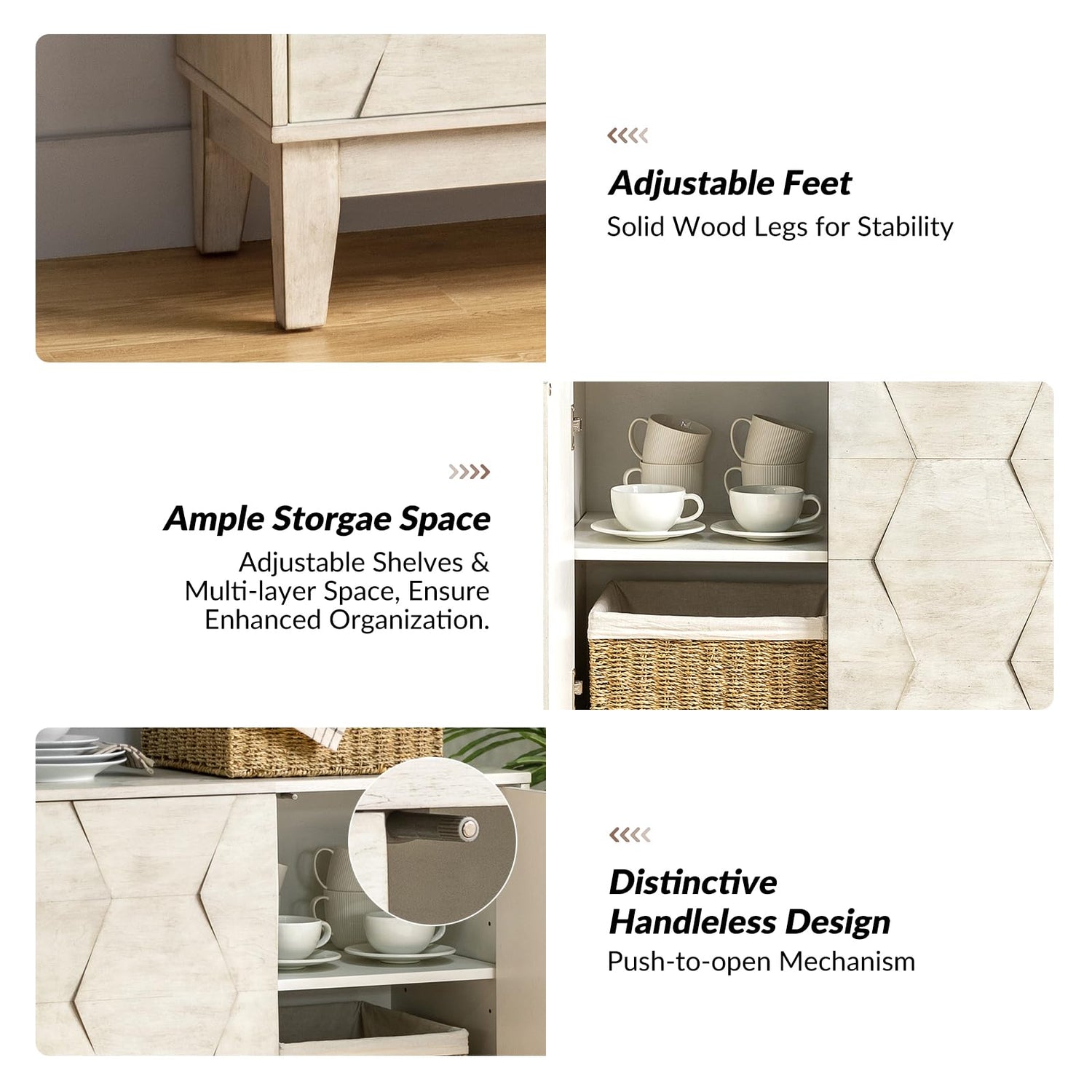 - STABLE AND DURABLE BUFFET SIDEBOARD - Made of high-quality solid and manufactured wood, which ensures the stability and promises a long service life. It's safe to store your plates, cutleries and so on.
