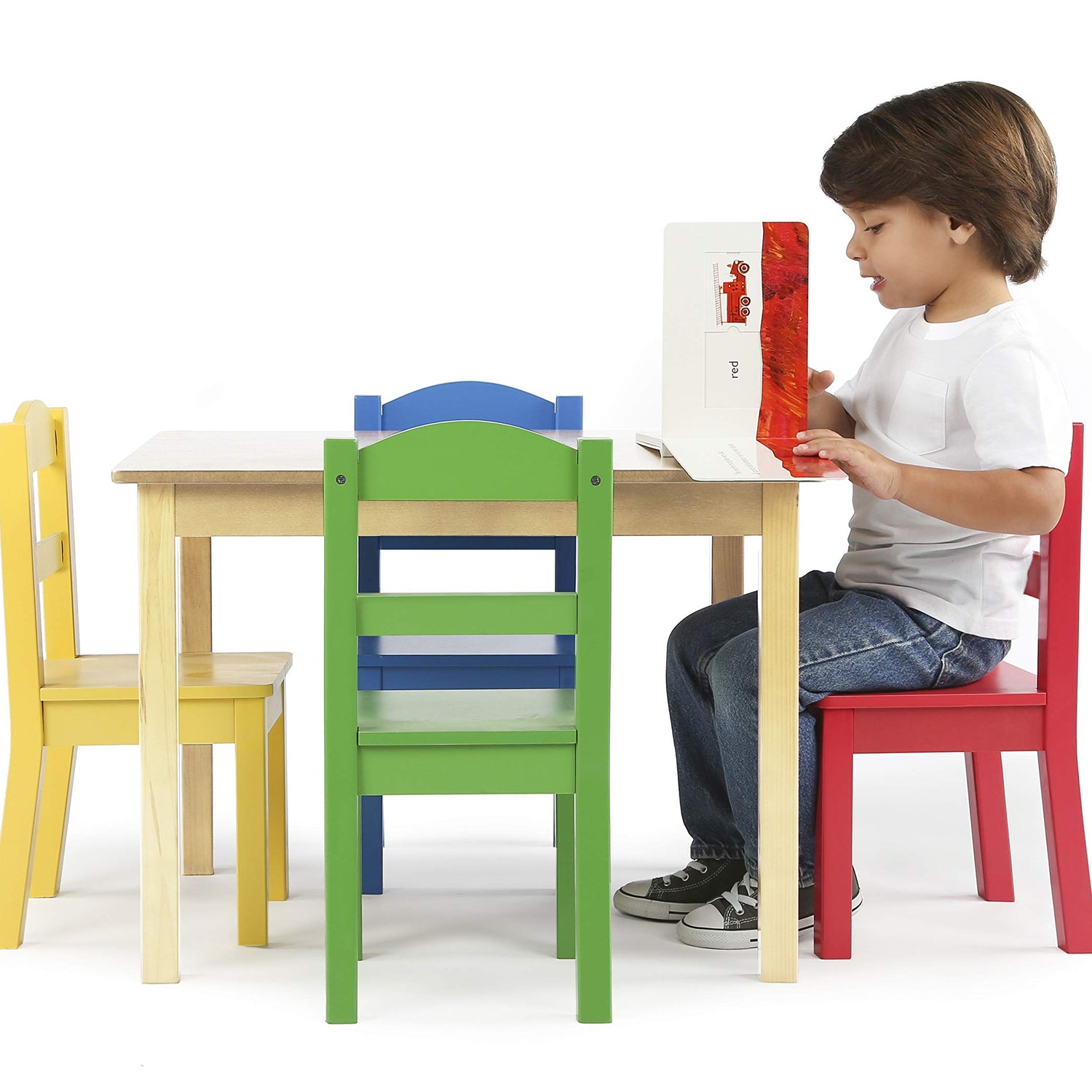 Humble Crew Collection Kids Wood Table & 4 Chair Set, Natural/Primary