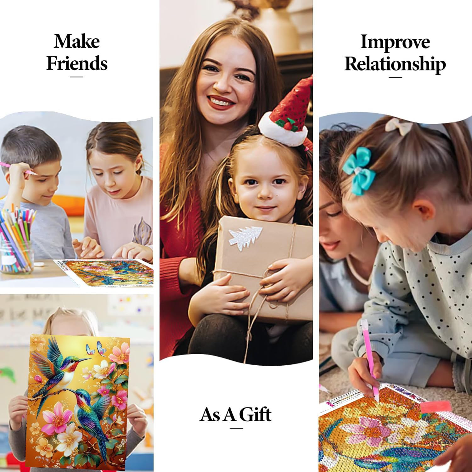 - Special Gifts: Hummingbird diy diamond painting kit for adults will be the better gift for friends and family. It can help parents kill time; can cultivate practical ability and patience. Improve their understanding of color and aesthetics. They can relieve stress for friends