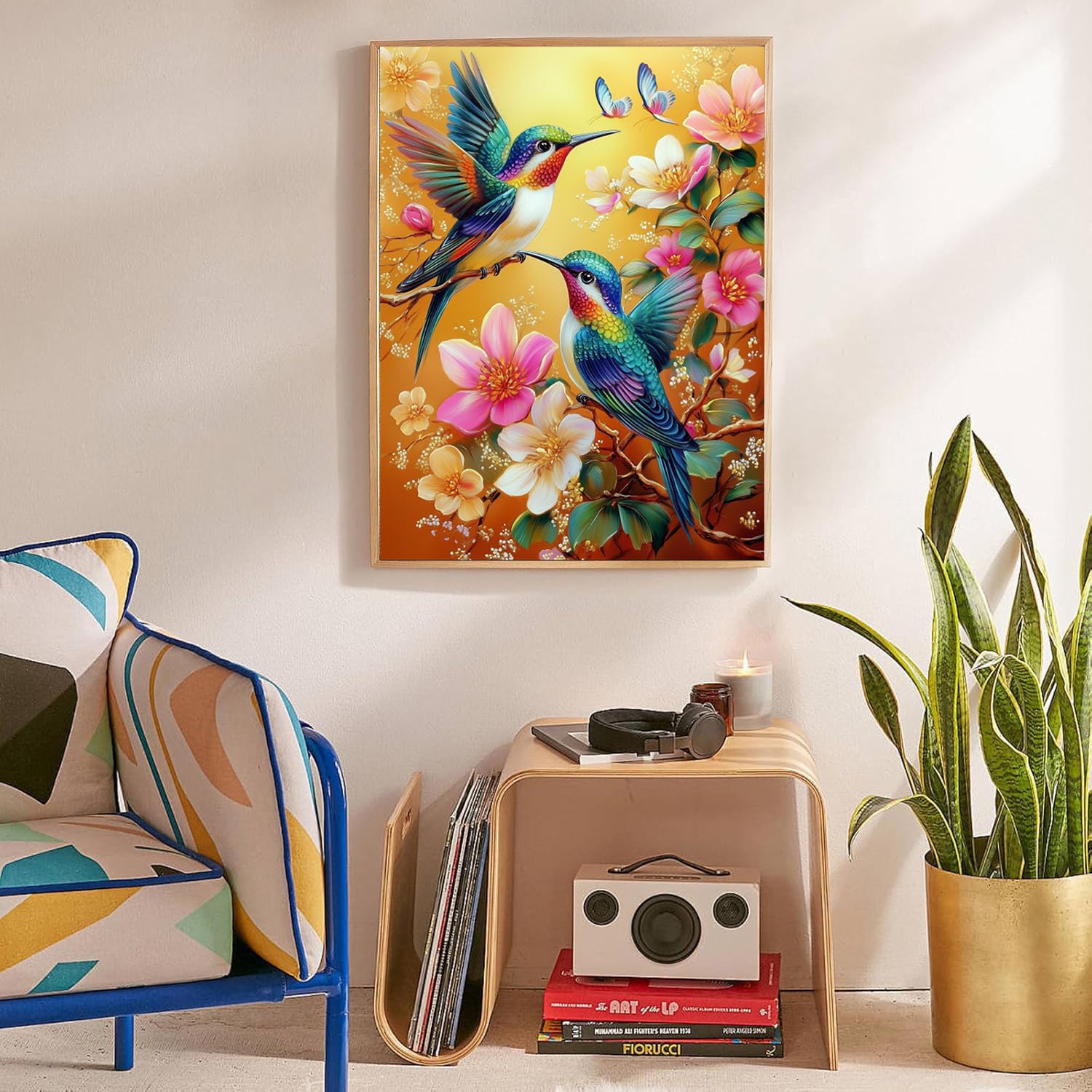 Hummingbird Diamond Art Kits for Adults- Hummingbird Diamond Painting Kits Adults, Animals Gem Painting Kit for Home Wall Decoration Gift 12x16 Inch