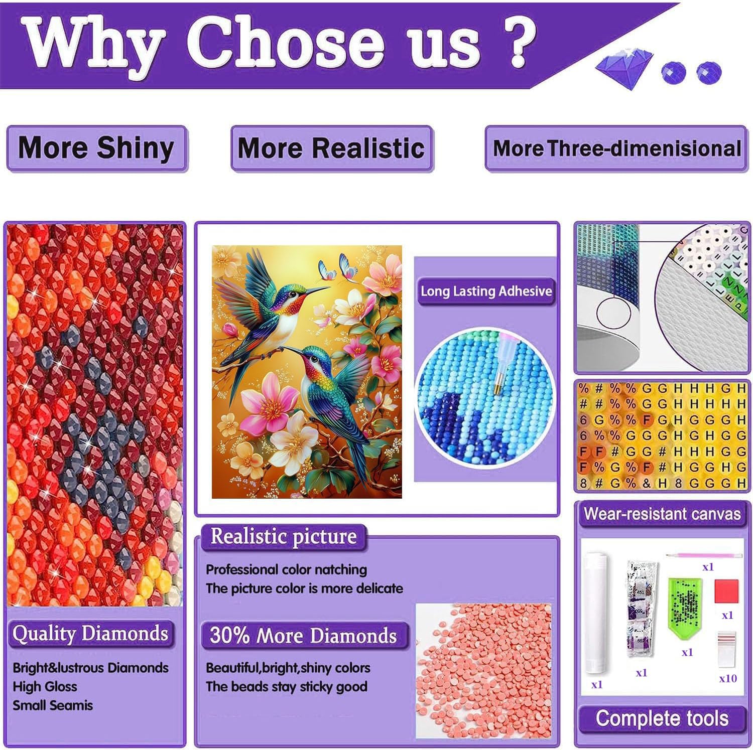 - Quality Diamonds: Diamonds of hummingbird diamond art kits for adults accessories are made by precision machines with uniform shapes and precise colors. We add 30% more diamonds to each diamond painting set to ensure you have enough diamonds to complete your artwork