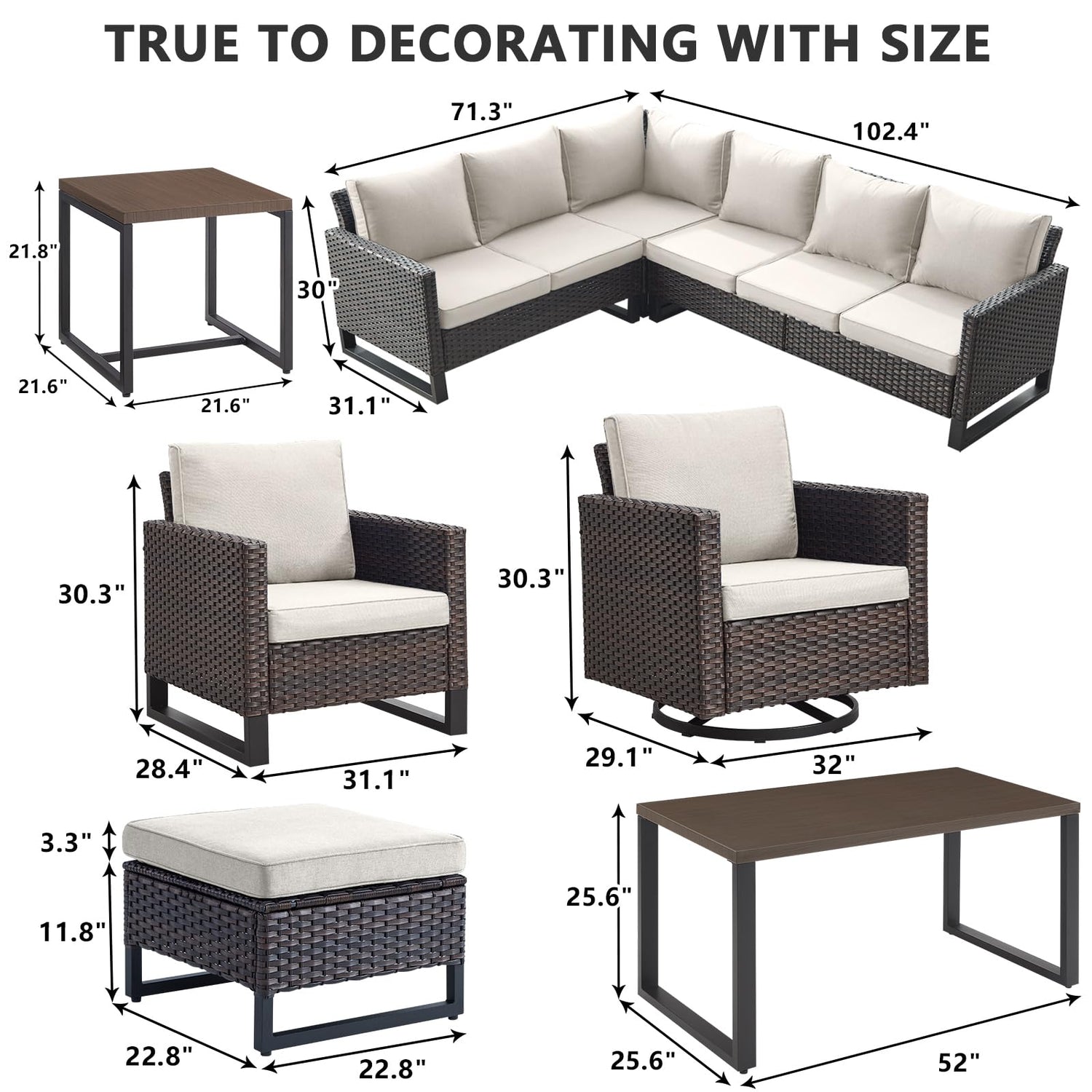 - 【Sturdy&Durable】Crafted with interior Anti-Rust powder-coated steel frame and wrapped in All-weather Hand-Woven PE wicker that make this sectional sofa set sturdy and durable,UV and Weather resistant,The upgrated rectangle feet of couch and table which add more stability.