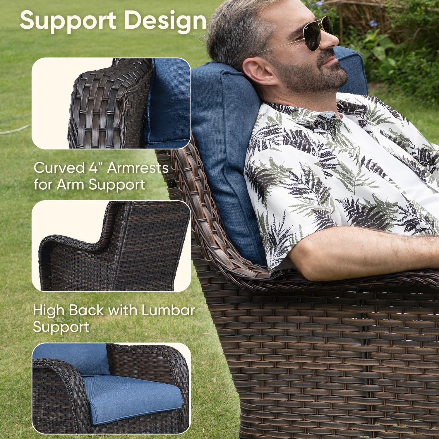 - Swivel and Glide Chairs: Relax and enjoy sitting on your front or back porch in ultimate comfort with swivel and rocking/ glider feature allowing for backward and forwards motion while also being able to swivel 360 degree to change direction.