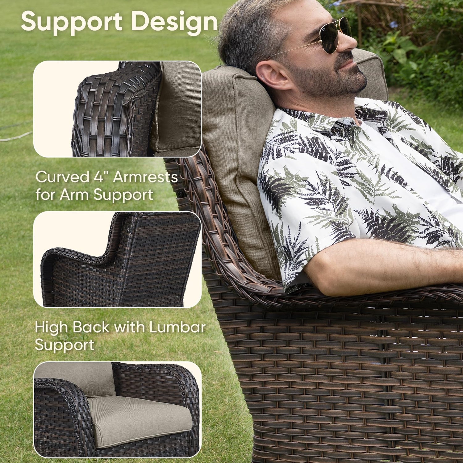 - Swivel and Glide Chairs: Relax and enjoy sitting on your front or back porch in ultimate comfort with swivel and rocking/ glider feature allowing for backward and forwards motion while also being able to swivel 360 degree to change direction.