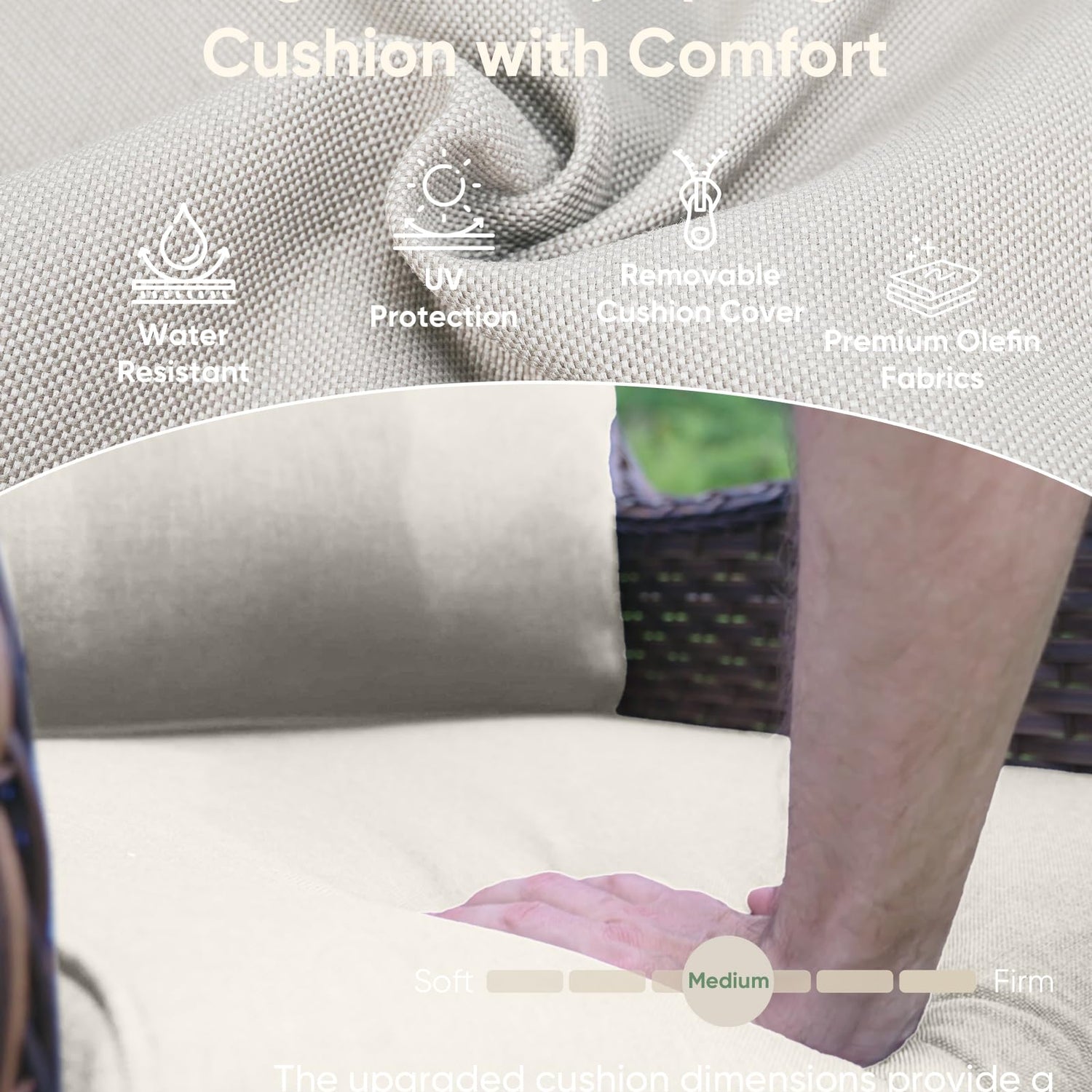 - Sectional & Multifunctional: This outdoor sectional furniture sets are including 2pcs 3-seater couch, 2 swivel chairs,2 ottomans,1 fire pit,1 side table,freely rearranged into different combination for different occasion.