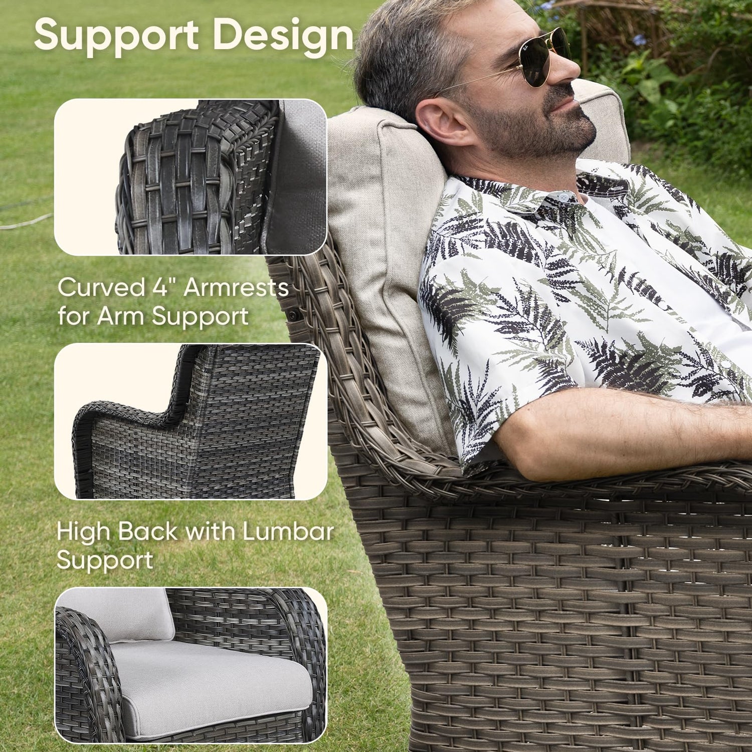 - Swivel and Glide Chairs: Relax and enjoy sitting on your front or back porch in ultimate comfort with swivel and rocking/ glider feature allowing for backward and forwards motion while also being able to swivel 360 degree to change direction.