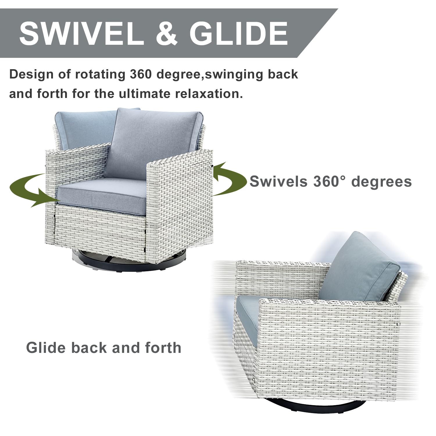 - 【360°Swivel Glider Rocker Chairs】: Design of rotating 360 degree,swinging back and forth,You can easily turn your face away from the sun without moving the entire chair, or swing your seat like a cradle for the ultimate relaxation while listening to music or watching your children play outside.