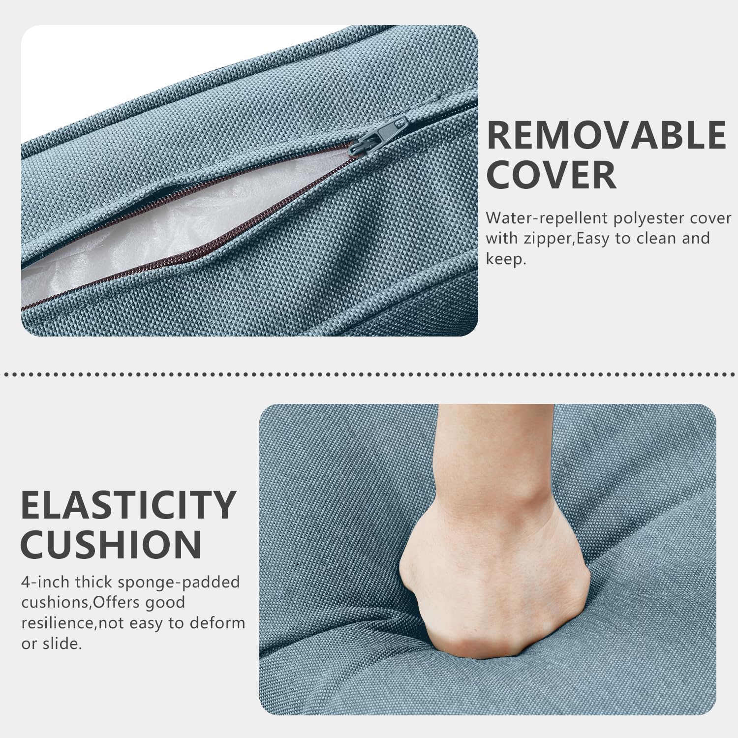 - 【Comfortable 4'' Thick Cushions】This garden furniture set features deep and wide seats with 4-inch thick sponge-padded cushions.Offers good resilience, not easy to deform or slide, also protect your lumbar and offer a comfortable sitting experience,Water-repellent polyester cover with zipper,Easy to clean and keep.