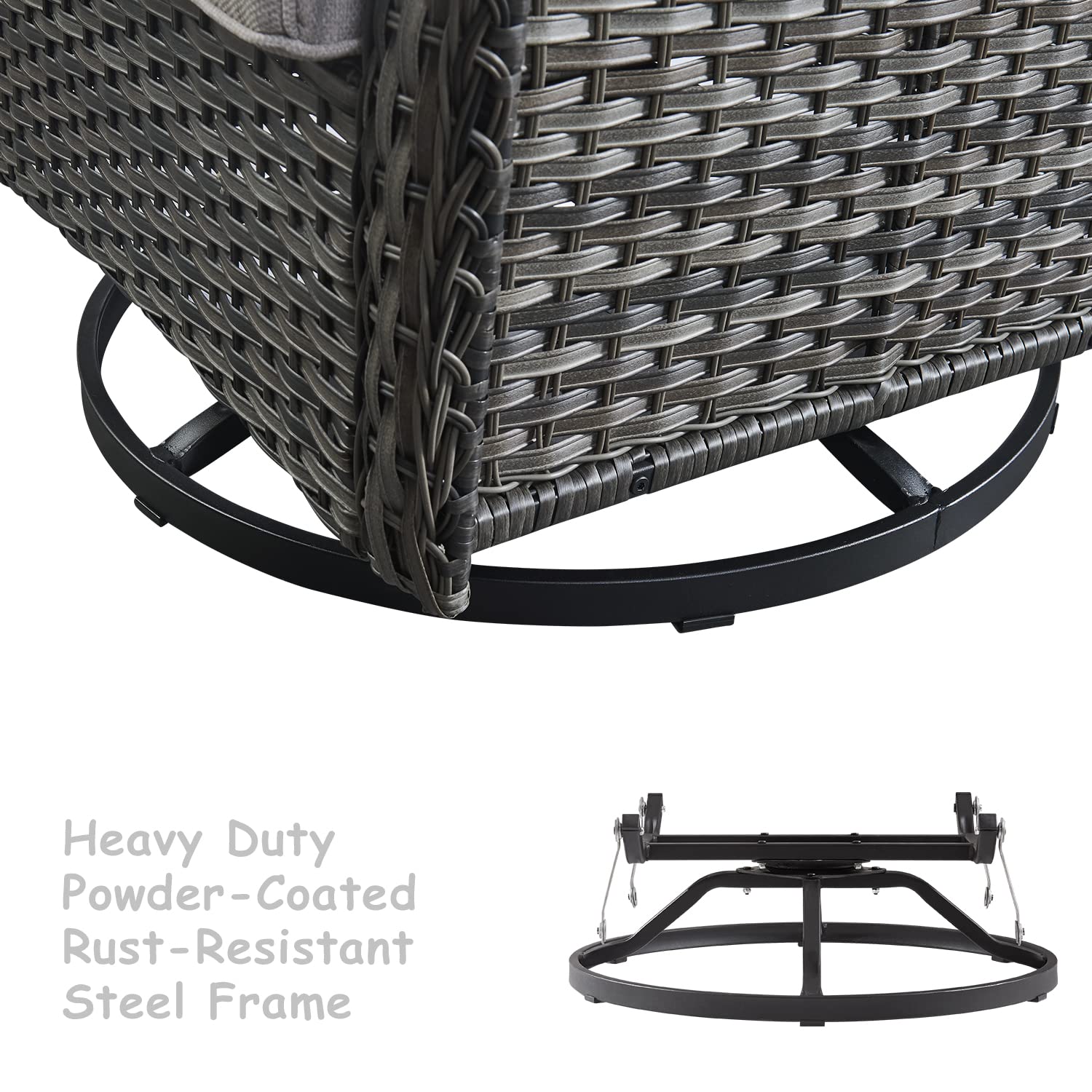 - 360°SWIVEL AND GLIDER CHAIRS: You can easily turn your face away from the sun without moving the entire chair, or swing your seat like a cradle for the ultimate relaxation while listening to music or watching your children play outside.