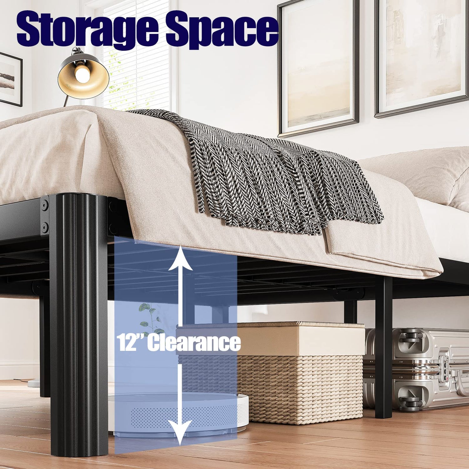 - HEAVY DUTY & NOISE FREE - Metal bed frame king feature reinforced construction that can bear heavy weights with no noise or no squeaking