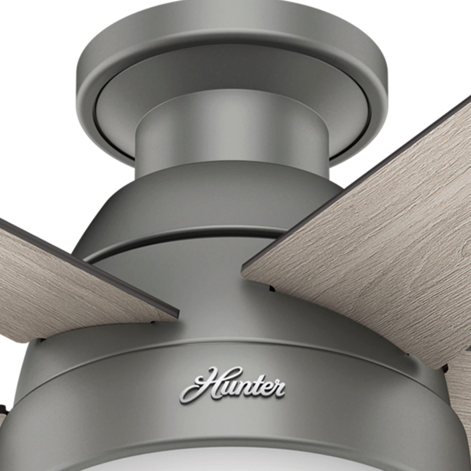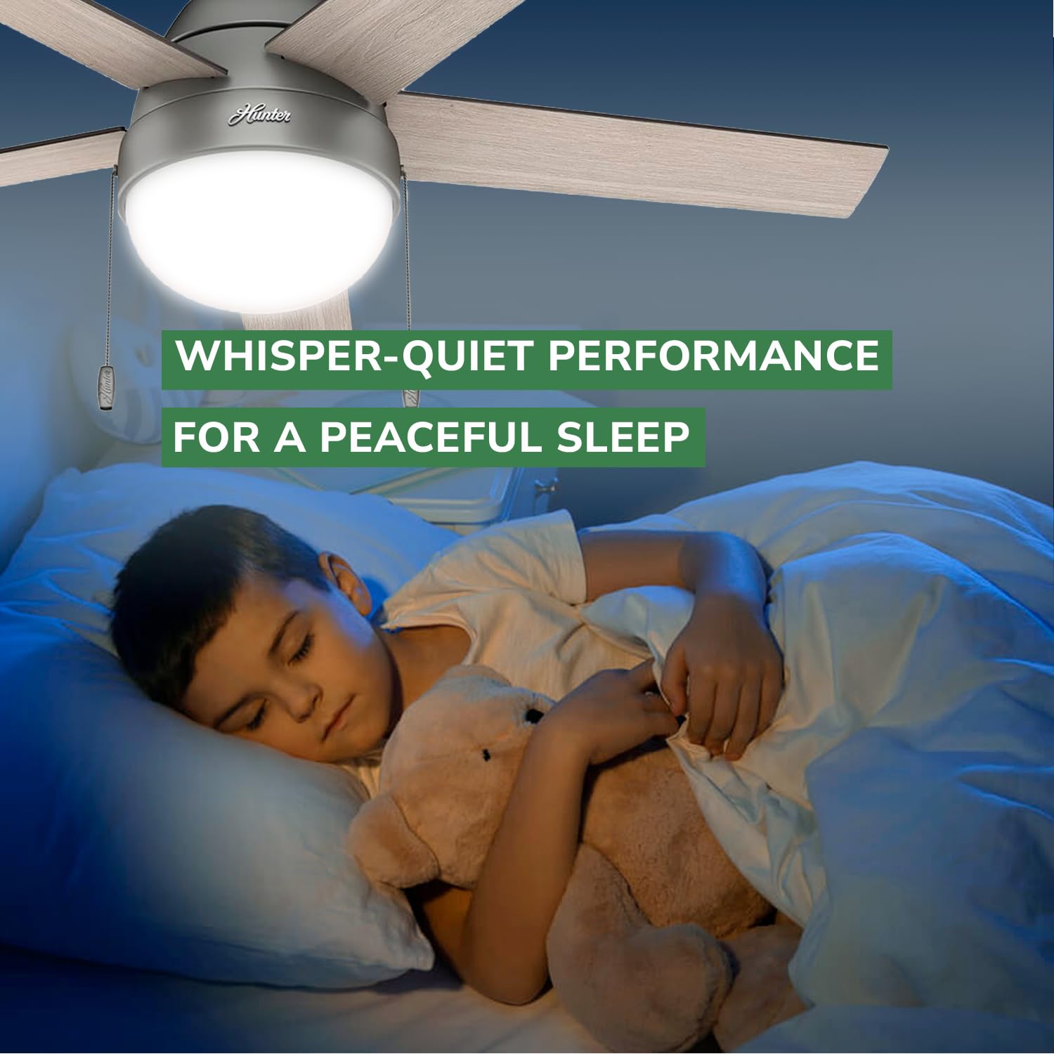 Hunter 59270 Anslee Indoor Low Profile Ceiling Fan with LED Light and Pull Chain Control, 46", Matte Silver Finish