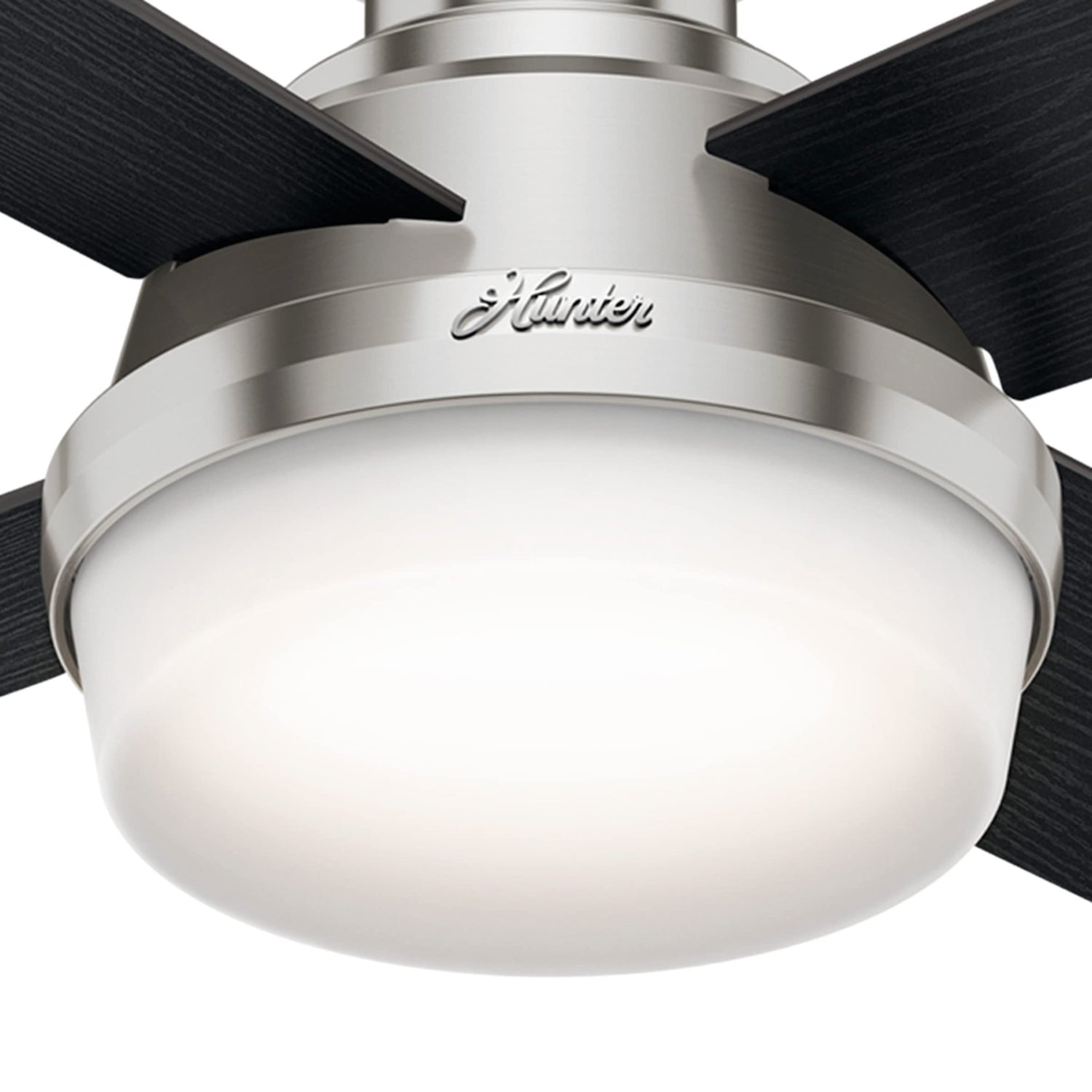 Hunter Fan Dempsey Low Profile Ceiling Fans with Lights and Remote, Flush Mount Ceiling Fan with Lights, Metal, Brushed Nickel Finish, 44 Inch LED