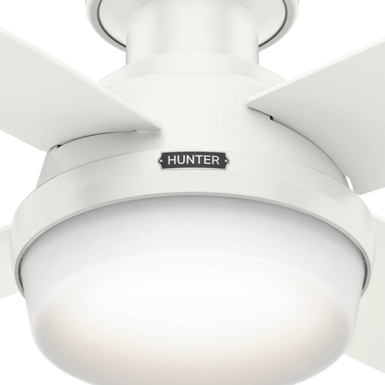 Hunter Fan Dempsey Low Profile Ceiling Fans with Lights and Remote, Flush Mount Ceiling Fan with Lights, Metal, Fresh White, 44 Inch LED