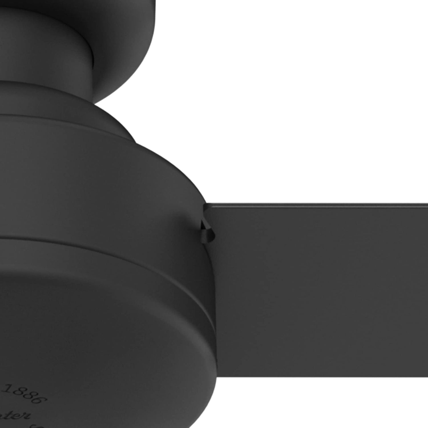 Hunter - Presto Indoor Low Profile Ceiling Fan, Wall Control, 52-inch, Matte Black, Casual-style, 3-speed WhisperWind Motor, 52407, for living rooms, bedrooms, home offices, kitchens