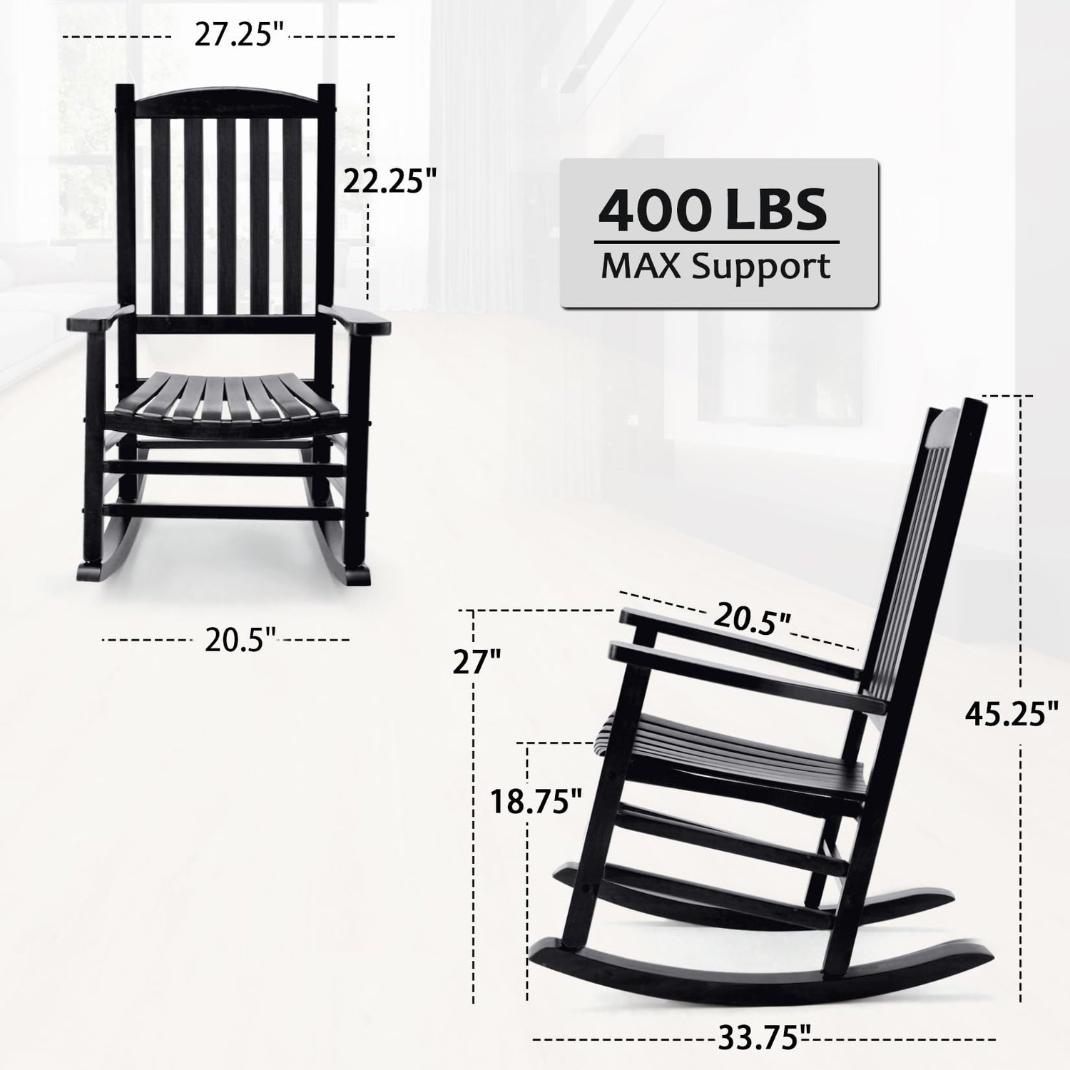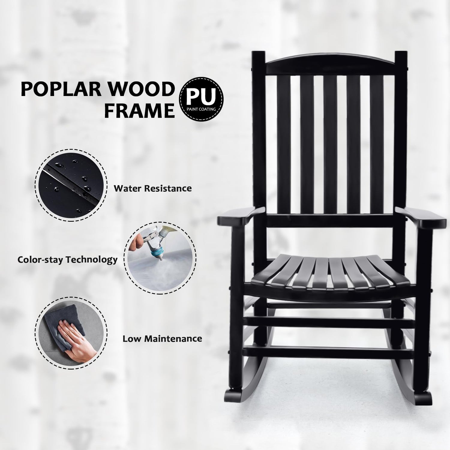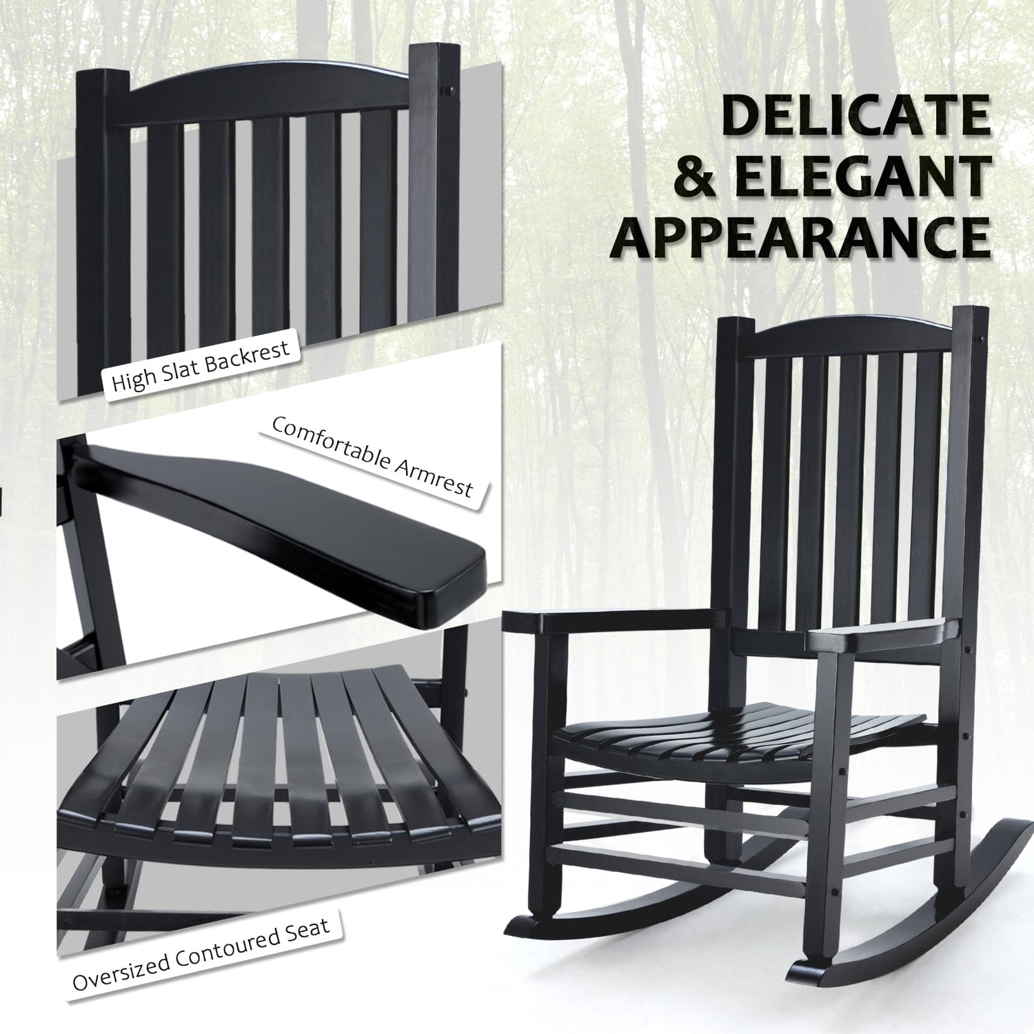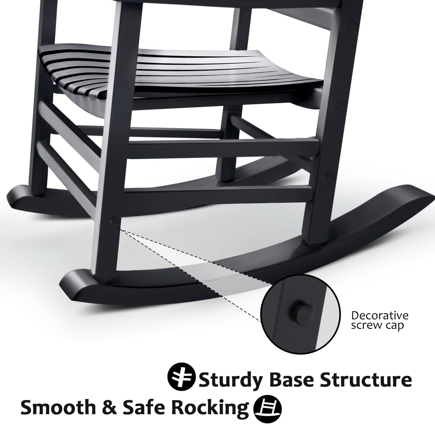 Hupmad Wooden Rocking Chair Rocker Outdoor Oversized Porch Rocker Chair,Patio Wooden Rocker with High Back and Armrest,All Weather Rocker Slatted for Backyard,Garden,400 lbs Support,Black