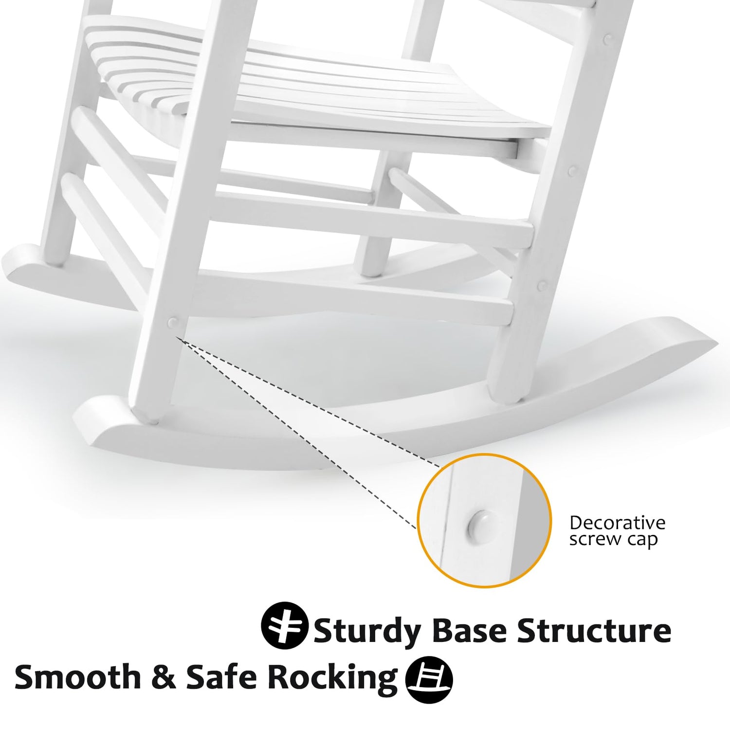 - SMOOTH ROCKING RADIAN: The elongated and gently sloping glide has a tested swing arc to provide a seamless and scientific rocking rhythm. The bottom adopts a secure and stable rocking chair structure, robust enough. The support point of anti-rollover protection and the swing curve employ a reinforced structure to enhance balance. Ensure that your weight remains at the center of the chair during usage. It is an ideal rocking chair to allow you to relax thoroughly