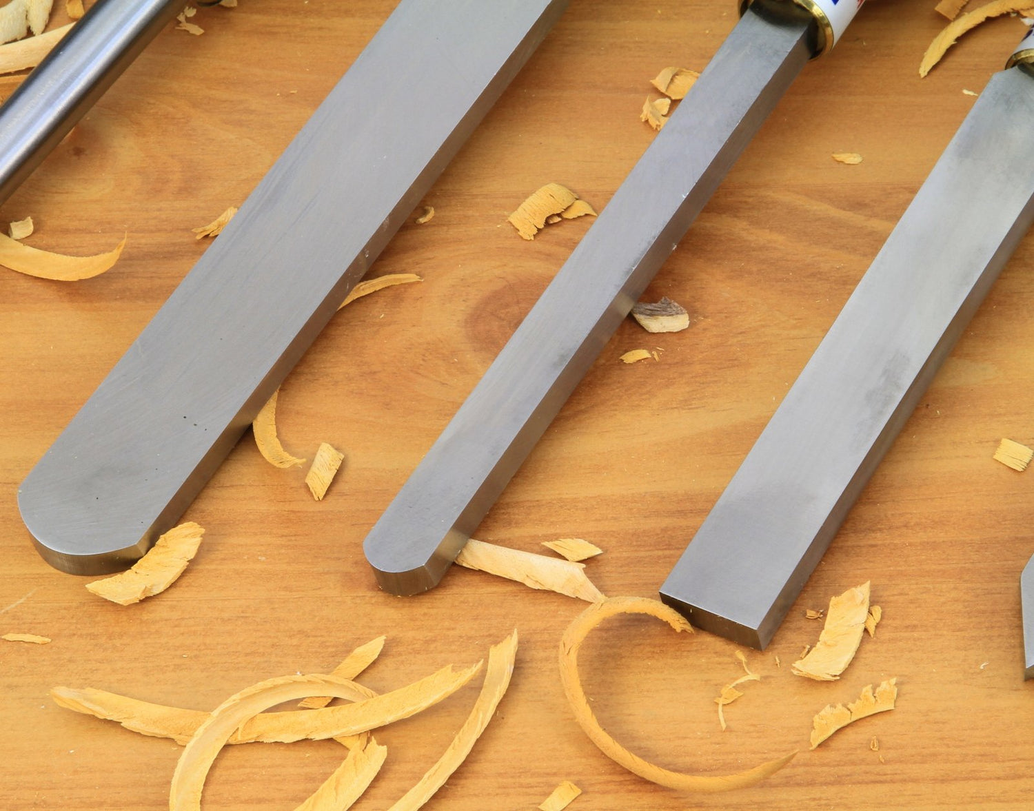 - Includes: 1/2" (5/8" Bar Stock) Bowl Gouge; 1/2" Spindle Gouge; 1" and 1/2" Round Nose Scrapers; 3/4" Square Nose Scraper; 3/4" Diamond Parting Tool; 1" Skew Chisel; 1" Roughing Gouge