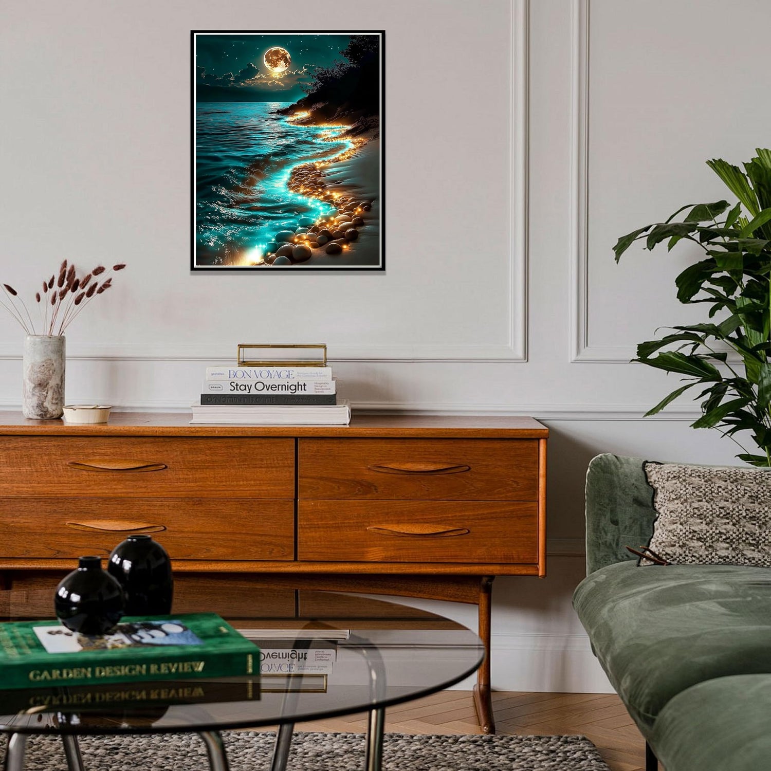 Hutarosl Moonlight Beach Paint by Number Canvas for Adults-Moonlight Paint by Numbers Kit for Adults,Beach Paint by Number Adult,Canvas Paint by Numbers for Adult for Gifts Home Decor 16x20in