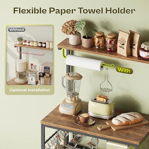 - 【Paper Towel Holder & Deep Desktop】Enjoy the convenience of a paper towel hook right where you need it. The wide top shelf provides a stable surface for your largest kitchen gadgets, helping you free up valuable countertop space and keep your kitchen clutter-free