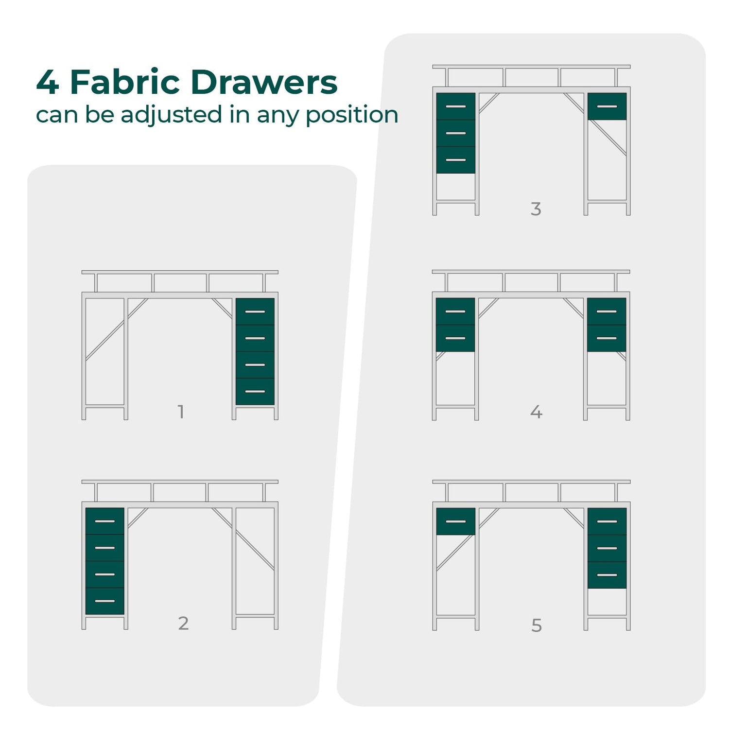 - Huuger【Computer Desk with Drawers】- PATENT PENDING! Using an RF remote control to turn off the lights, the desk can be used as a home office desk for working from home. 4 fabric drawers help store files, stationery and other office supplies, this desk has ample storage space for you to store unlimited office supplies and documents. Super practical design!