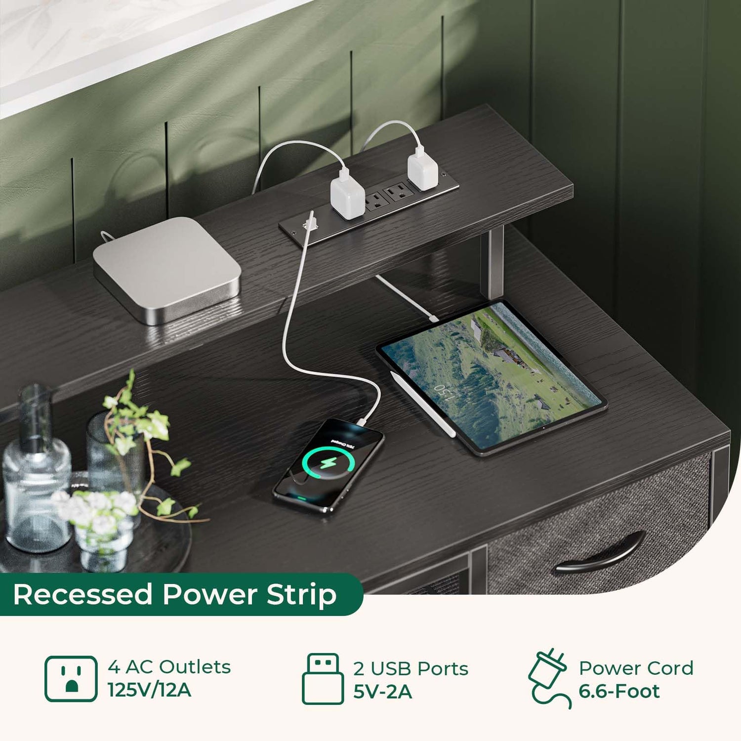 - 【Desk with Power Outlets】- Equipped with 4 Standard Plug Outlets & 2 USB Ports, this computer desk with shelves can easily charge your phones, gaming gear and other office devices, avoiding cluttered wires.