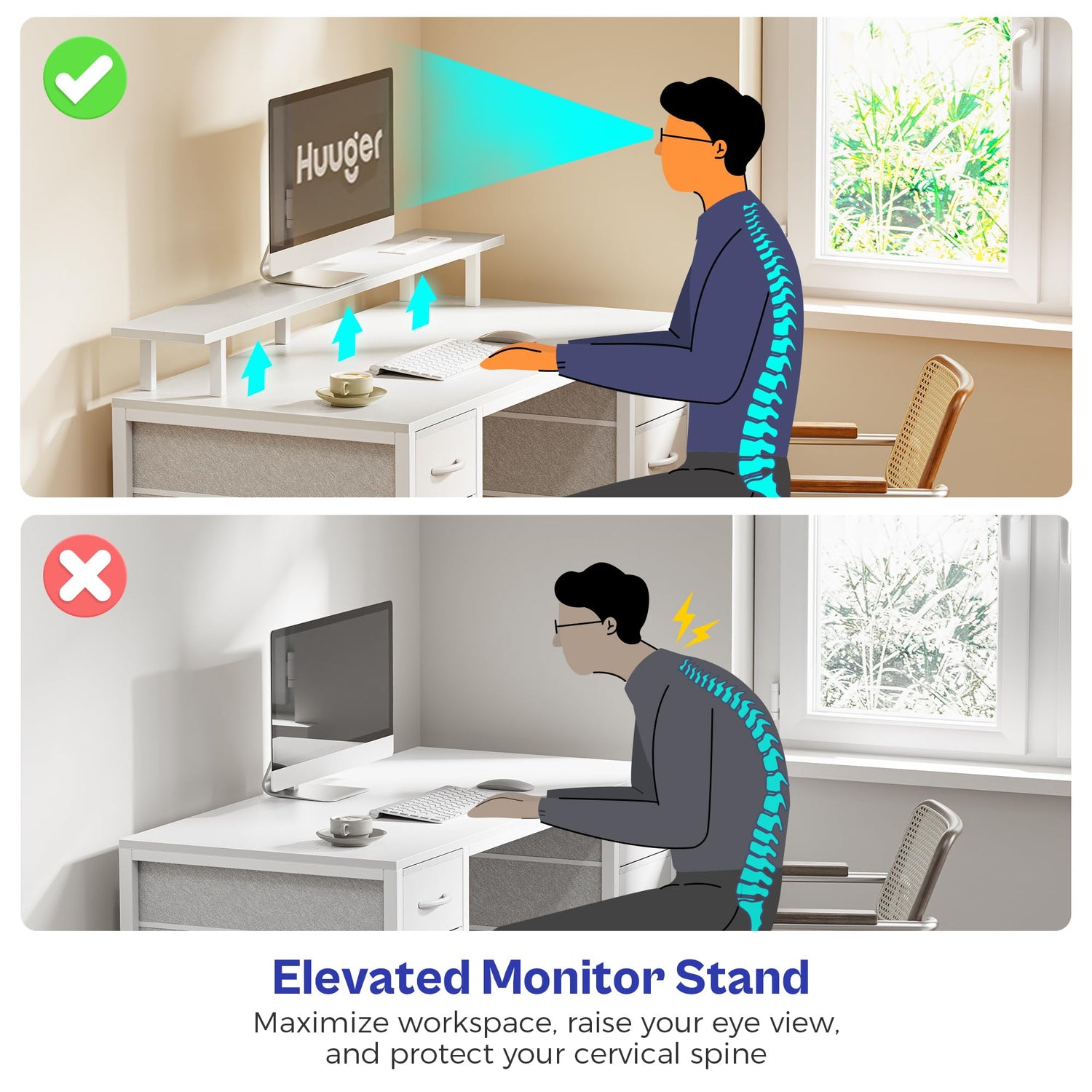 - 【Computer Desk with Shelves】- The monitor stand allows you to sit correctly while working, you can have a healthy cervical spine to stay productive while working at home.