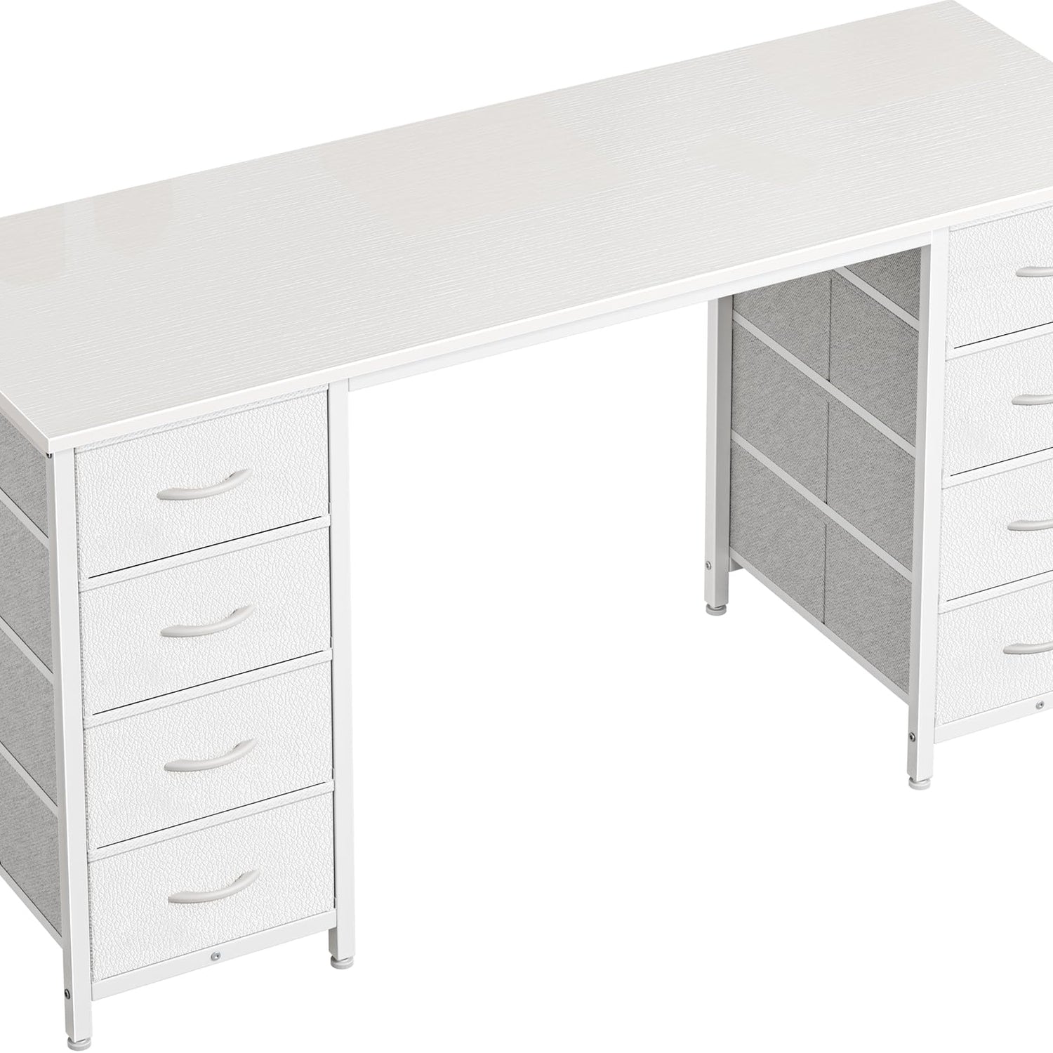 Huuger 47 Inch Vanity Desk with 8 Drawers, White Desk, Makeup Desk with Large Storage, Fabric Drawers, Wooden Desktop, Computer Desk Work Desk, for Home Office, Bedroom