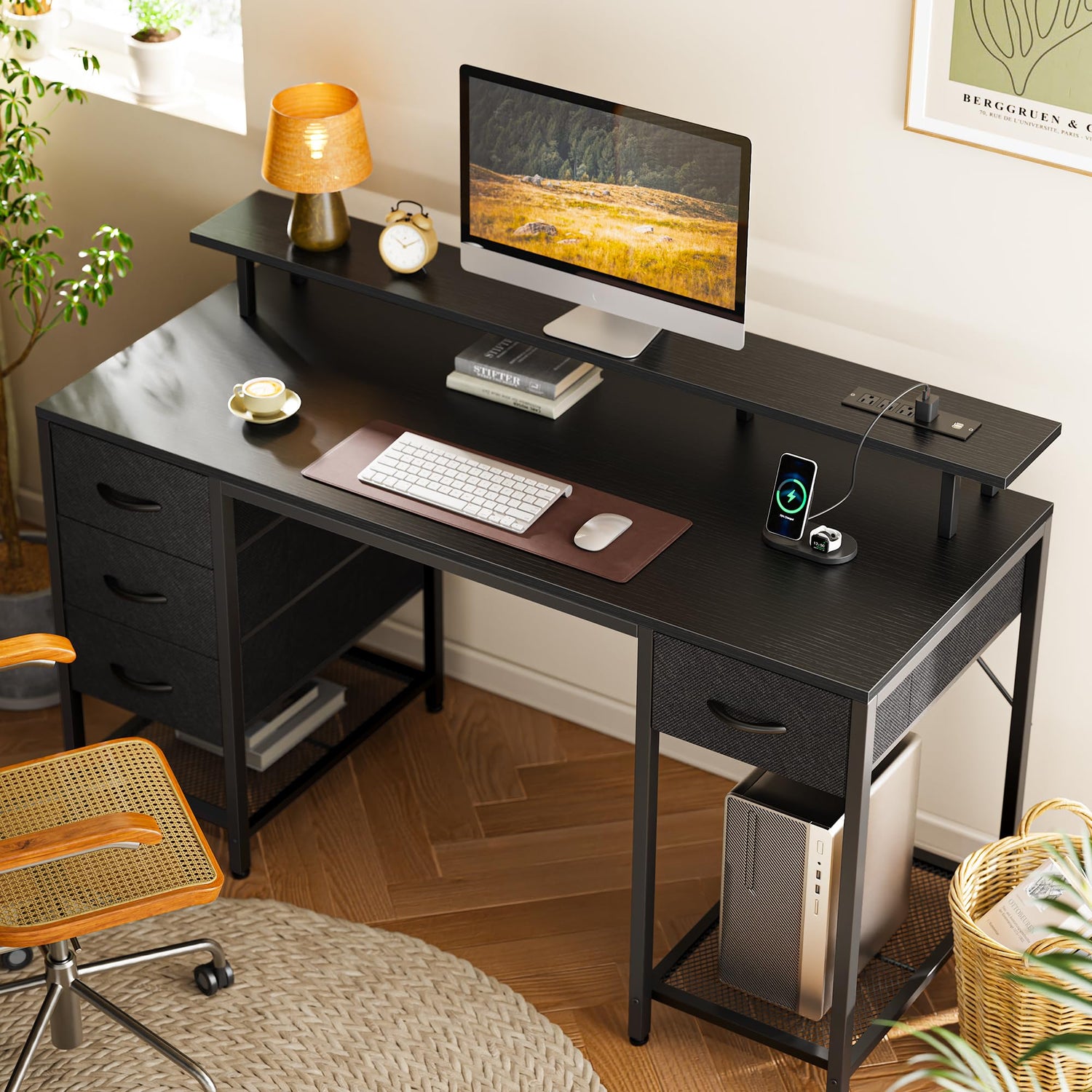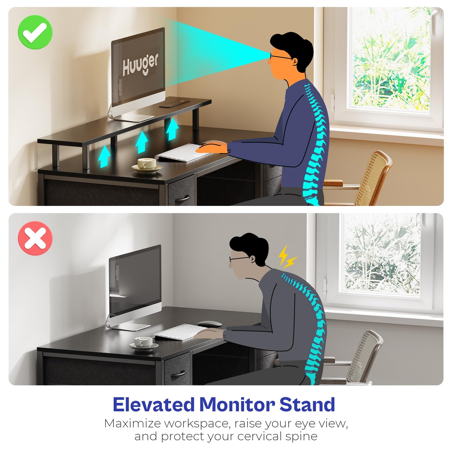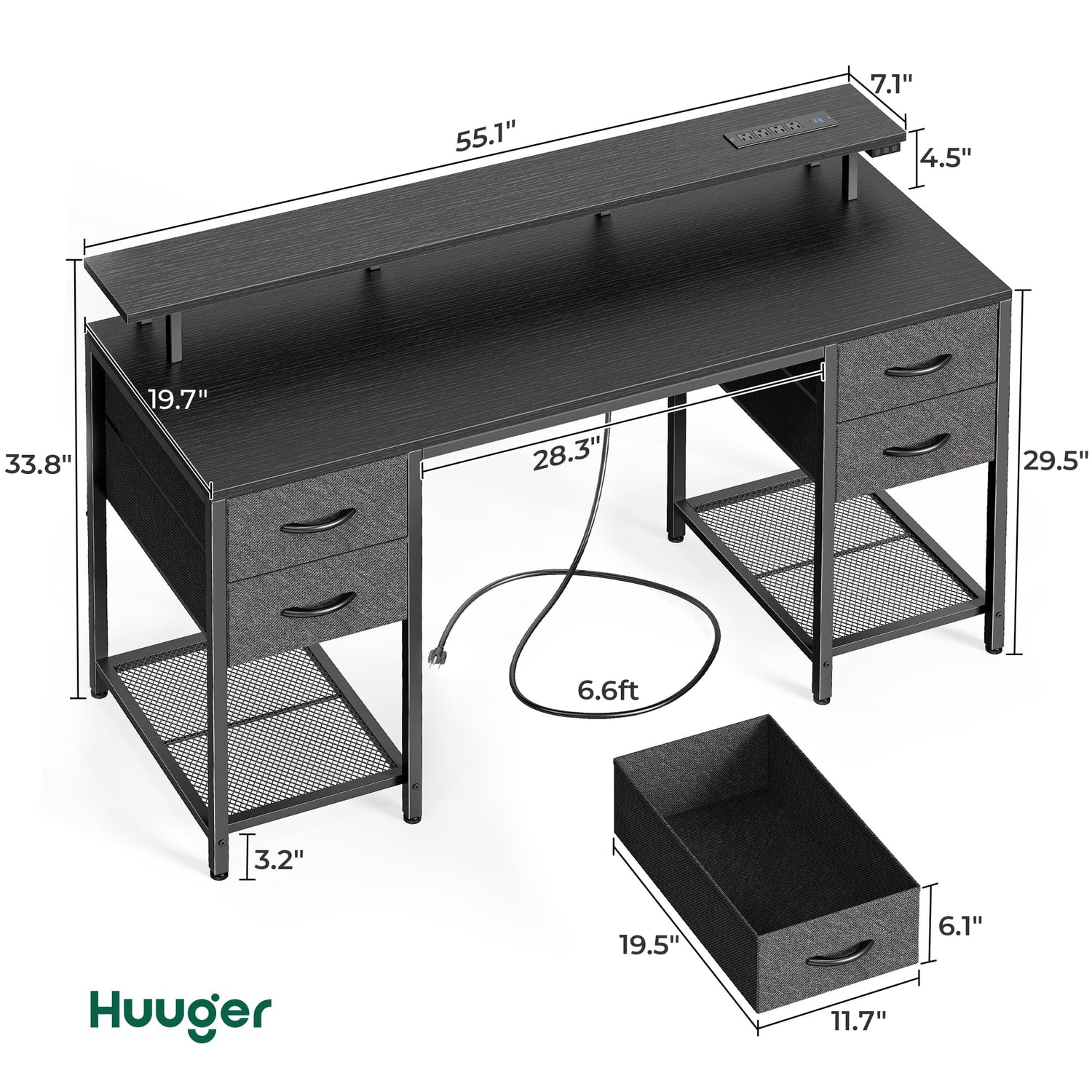 - Huuger【Computer Desk with Drawers】- PATENT PENDING! The desk can be used as a home office desk for working from home. 4 fabric drawers help store files, stationery and other office supplies, this desk has ample storage space for you to store unlimited office supplies and documents. Super practical design!