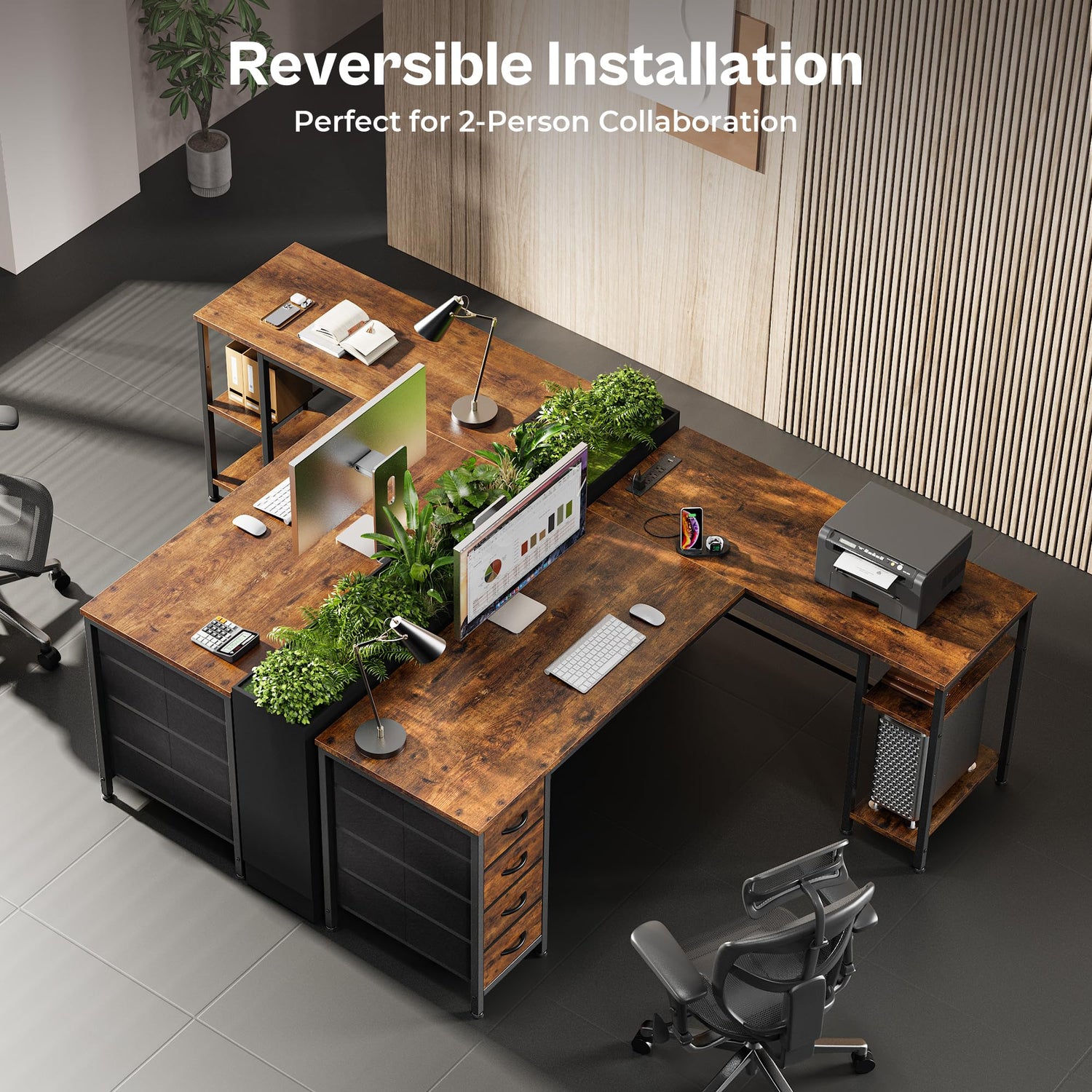 - 【Reversible Home Desk with Larger Legroom】Reversible L-shaped design lets you set up the work desk or gaming desk left or right to fit your space. Want a shared workspace or gaming room? Combine l shaped desks with storage for a roomy 2-person setup — great for home offices or open workspaces with lots of legroom